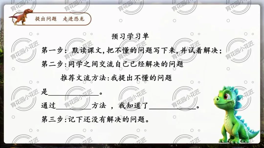 本课紧扣四年级下册第二单元“提出不懂的问题并试着解决” 的核心要素,以预习单为载体,引导学生自主提问、交流解疑方法,完整落实单元能力训练目标。针对教学重难点,教师以恐龙飞向蓝天的演化过程为主线,通过表格梳理、对比品读、写法迁移等环节,层层拆解演化脉络,既让学生清晰把握科普内容,又吃透对比列举的表达方法,深刻体会说明文用词的严谨准确。