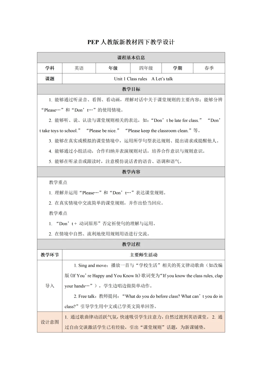 新改版 英语四年级下册单元教案含反思(人教pep26春)