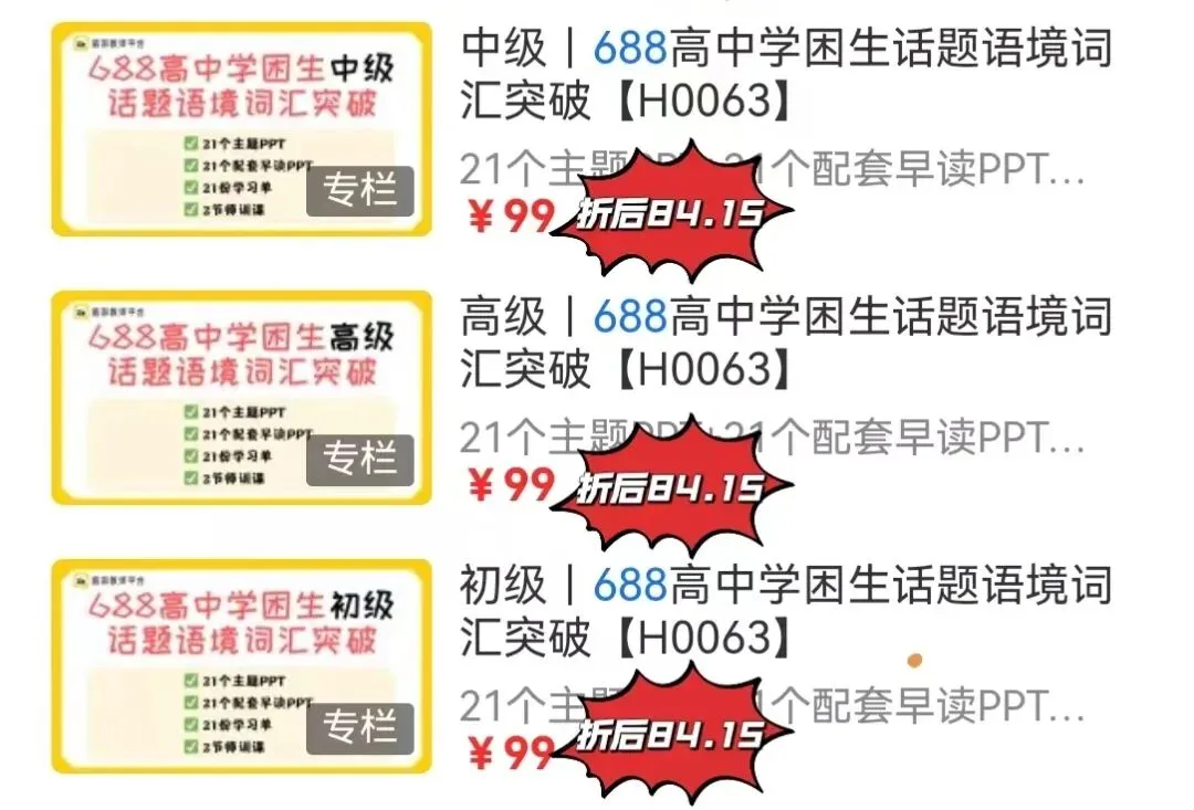 1、全场85折(除首发资料、限时折扣、单课等除外)