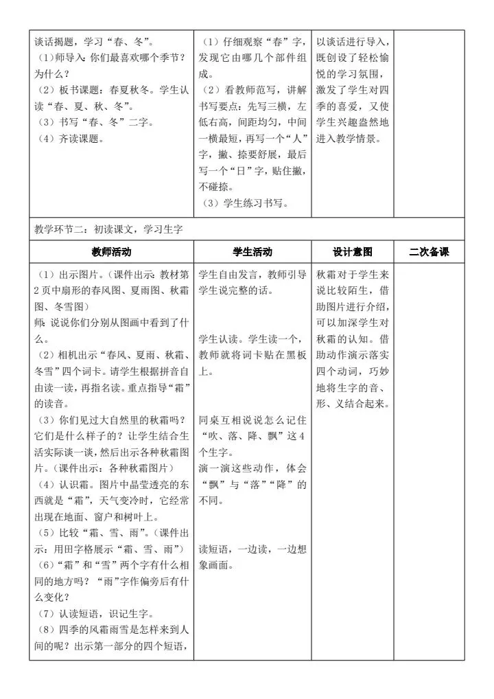 >一年级下册语文《全册核心素养教案(含教学反思、二次备课栏、思政元素)》word版可编辑,高清电子版可打印