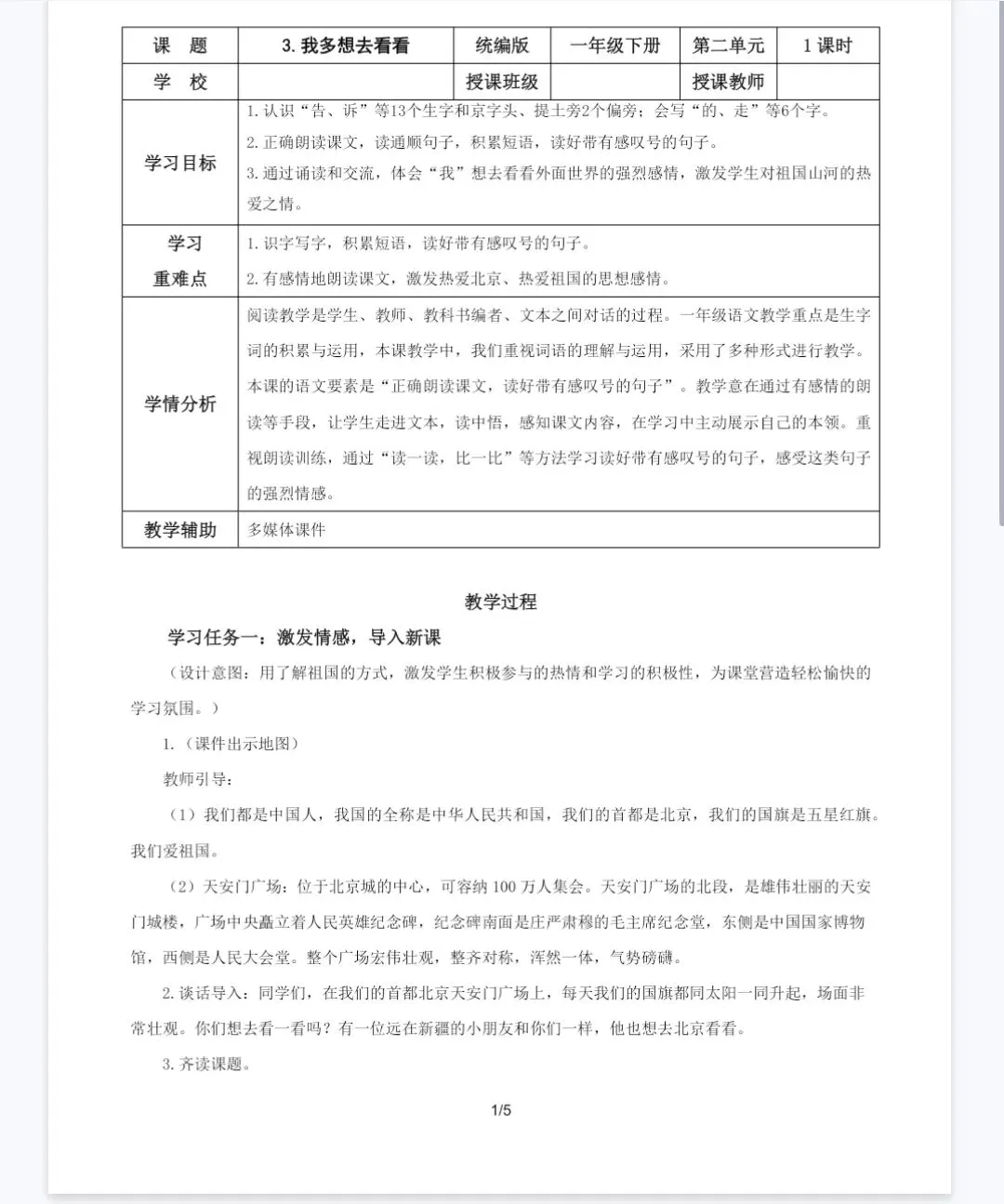当前位置:首页>课件>【精品课件】一年级下《我多想去看看》课件+教案