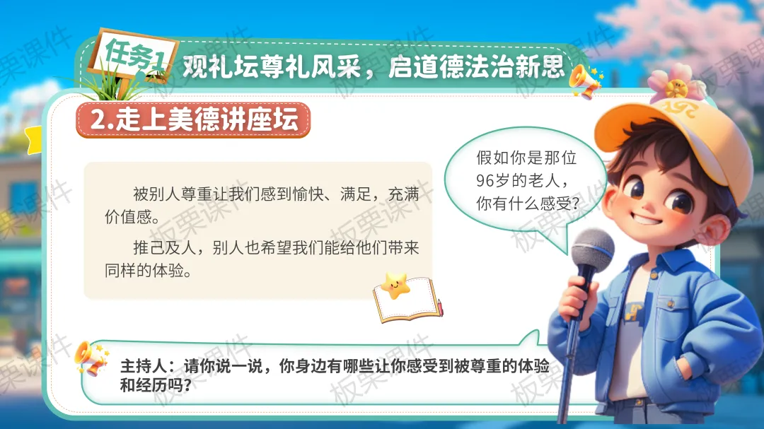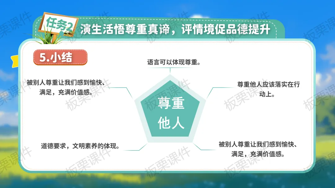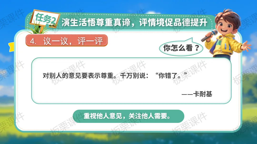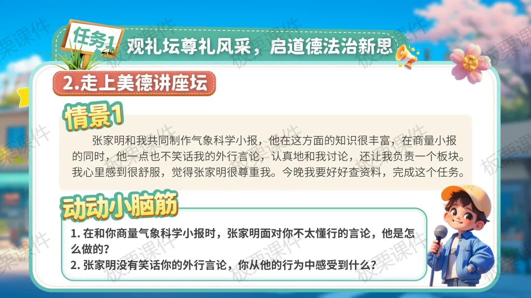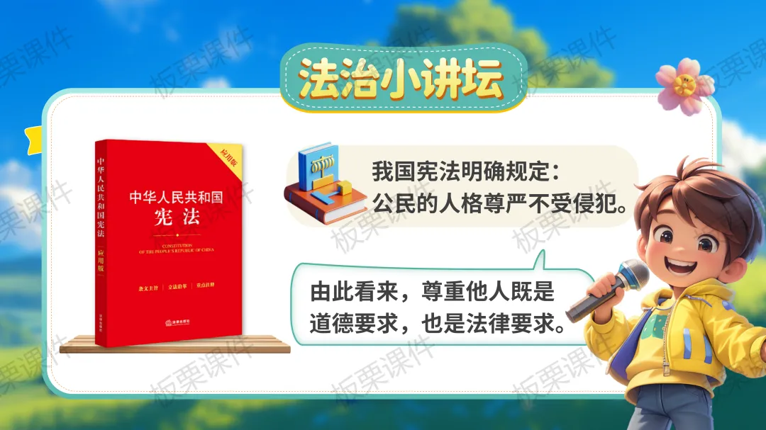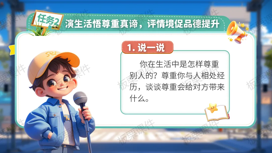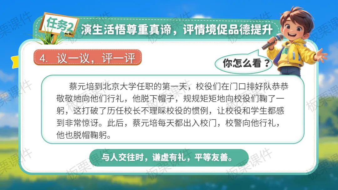 情景表演+角色扮演!《学会尊重》课件用“小明和小王”“清洁工叔叔”等生活情景,让学生演着演着就懂了丨板栗