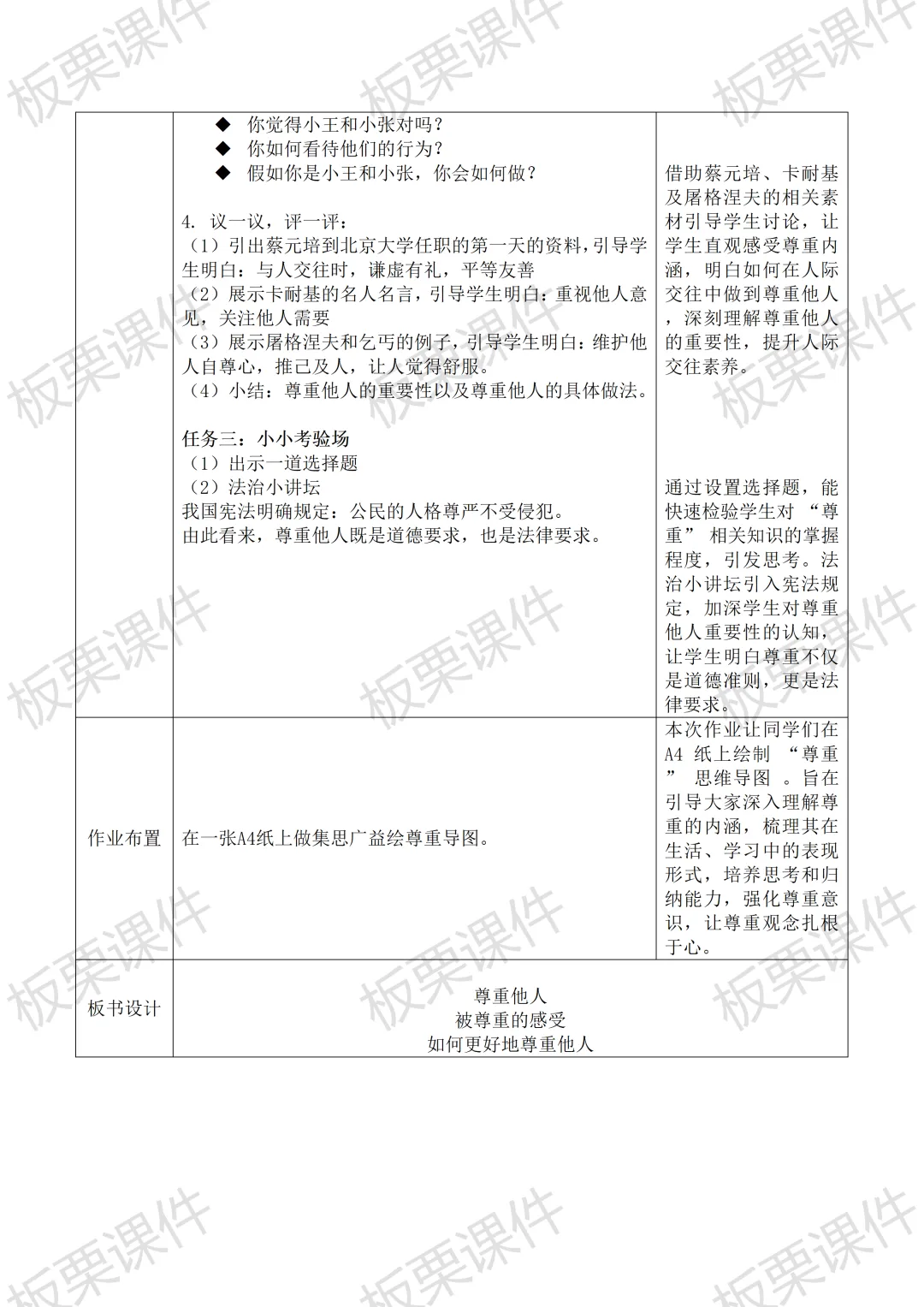 • 既帮学生理解尊重他人是文明素养,更明确其法律要求,还附思维导图作业巩固认知,让品德教育落地生根,省心备课直接用!