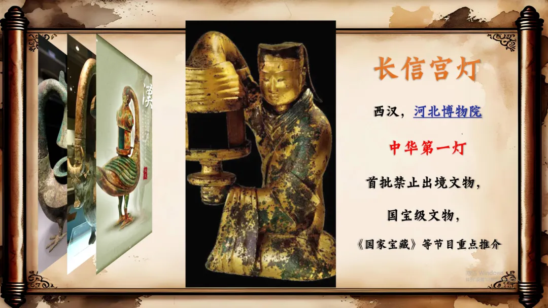 人与社会主题语境下的 “历史、社会与文化” 子主题,聚焦中国传统文化与文物保护,通过推荐汉代雁鱼青铜灯,展现中国古代科技与艺术成就,增强文化自信。