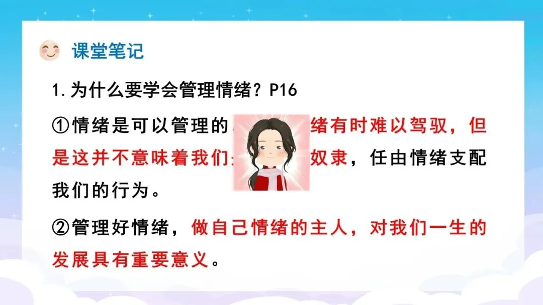 【【数字人讲解】道法七下2.2学会管理情绪(课件+教学设计+逐字稿)】 https://www.bilibili.com/video/BV1TtP1ziEuW/?share_source=copy_web&vd_source=f6bb964ea9ac908e660f66d4f72b4beb
