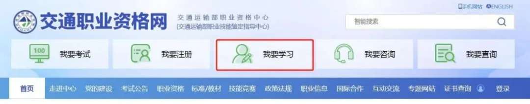 姜波,高级工程师,现任哈尔滨市道路交通运输协会理事。在交通城建领域拥有丰富经验,曾任职于哈尔滨市公路管理处、交通运输局、利民开发区管委会、市建委及哈工大设计院等多个单位。主导了哈尔滨市“一环九射”骨架公路网规划、利民开发区总体规划、百亿级城市综合管廊等重点项目的建设与管理工作。目前主要负责行业协会内的“两类人员”培训与企业安全标准化建设工作。 登录“交通职业资格网”(https://www.jtzyzg.org.cn)首页,点击“我要学习”栏。