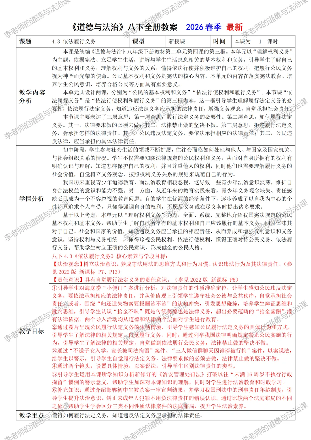 编者的话:李老师将连载2026春季《道德与法治》各年级的精品备课和学习资料。本资料为李老师原创,未经允许,禁止转载!