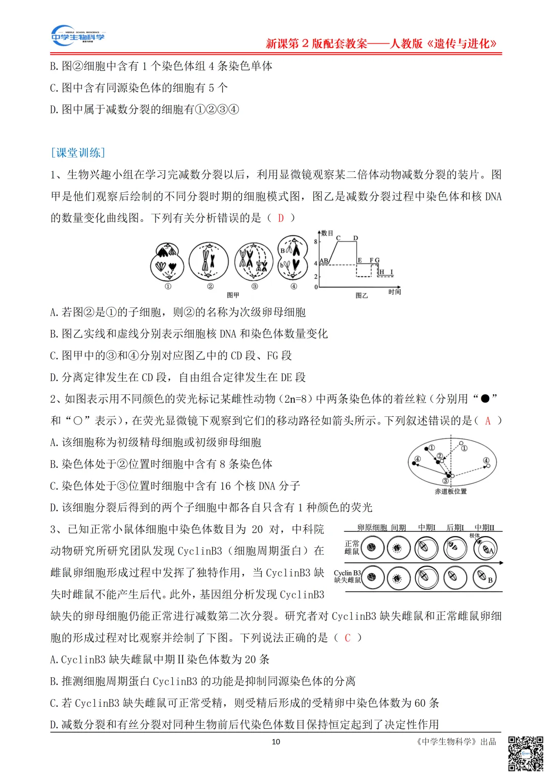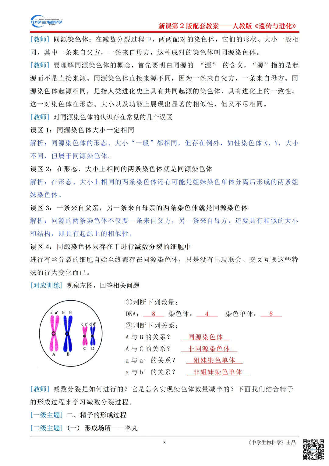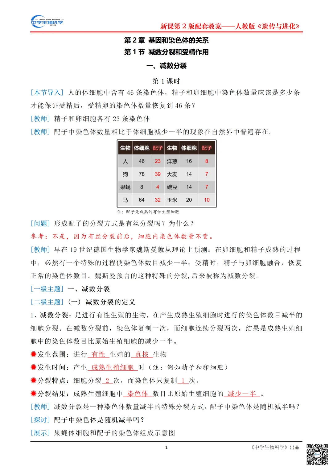 章节|人教版新教材《遗传与进化》第二章第1节