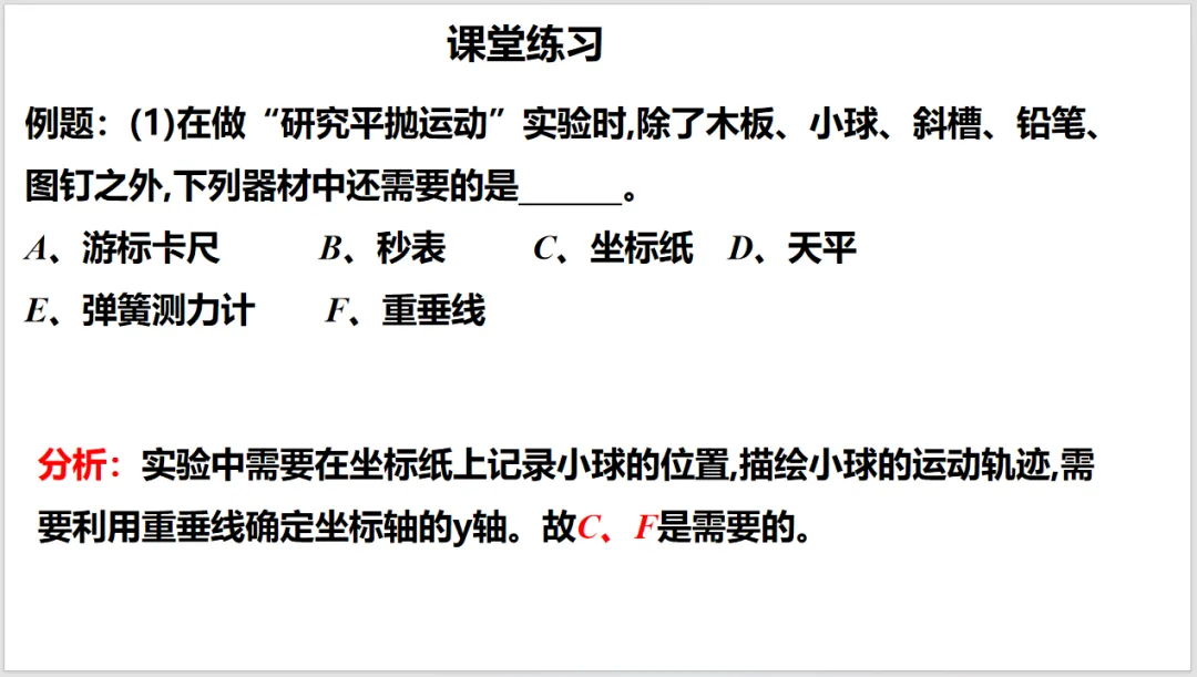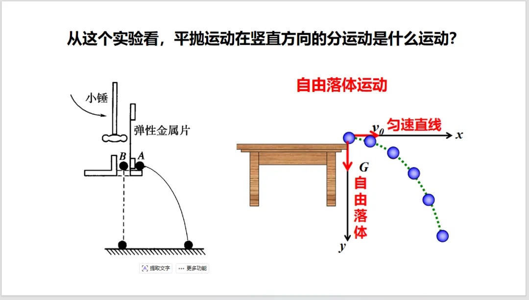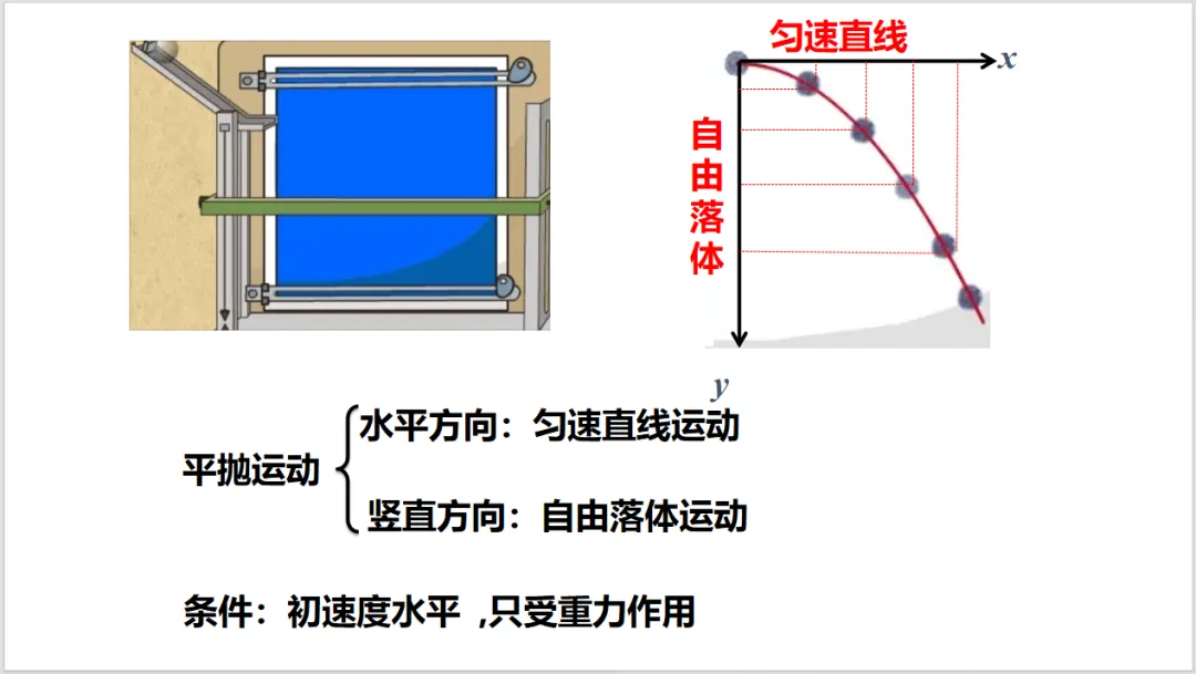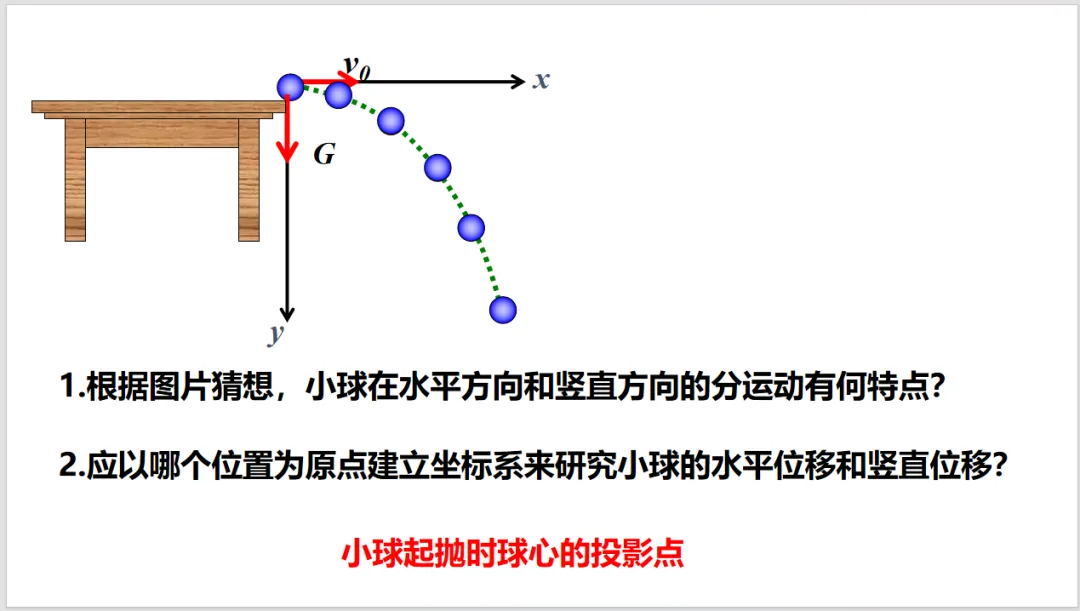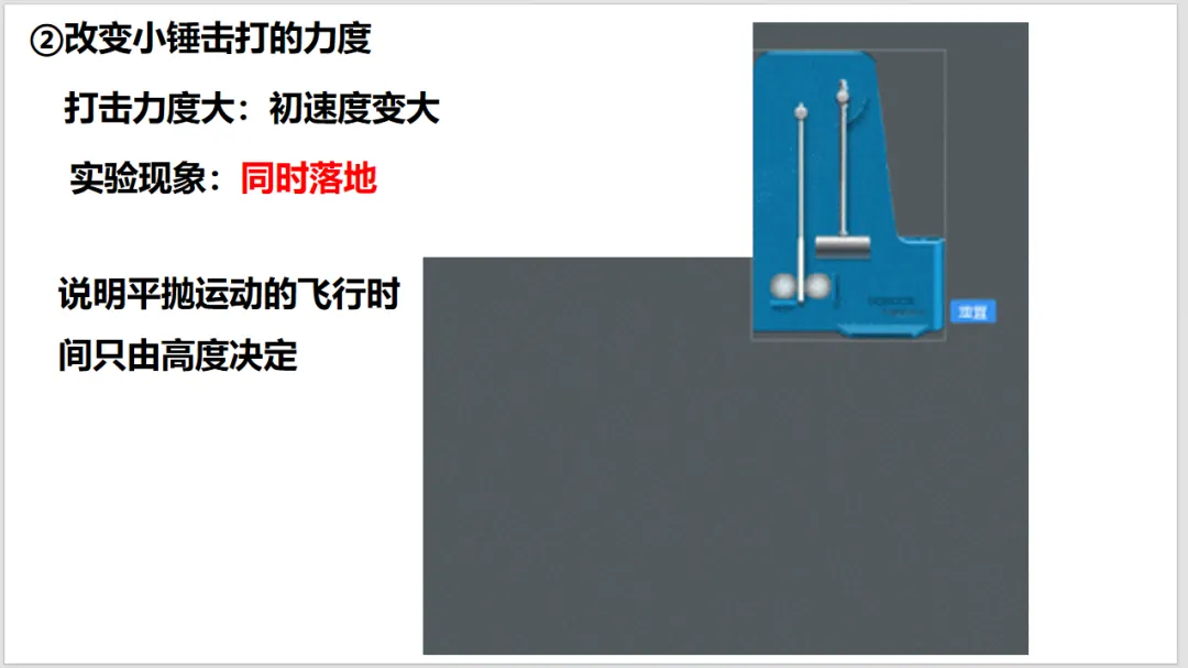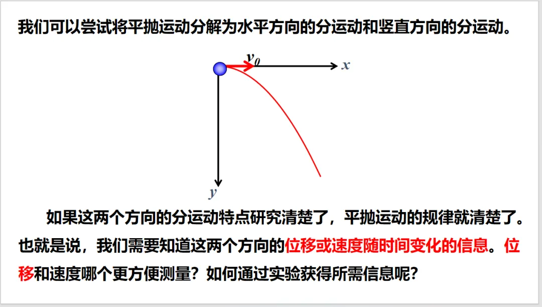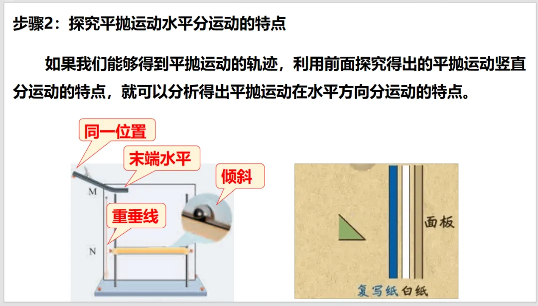 本节实验属于探究性实验,而不是验证性的。在这一节中,要求会用运动的合成与分解的方法分析抛体运动。教材中采用了先理论分析探究平抛运动的实验方法和实验思路,再分两个步骤做实验。首先是先研究竖直方向的特点,在获得结论之后,利用竖直方向做自由落体运动的结论,进一步探究平抛体在水平方向运动的特点。这样处理,有利于学生形成正确的逻辑思维。探究的过程既有实验现象的观察,又有分析、推理的过程,还要将实验现象与分析、推理结合起来。实验的手段上既有传统的仪器演示实验,也介绍了使用频闪照相技术等。