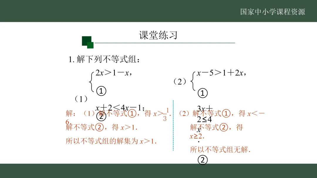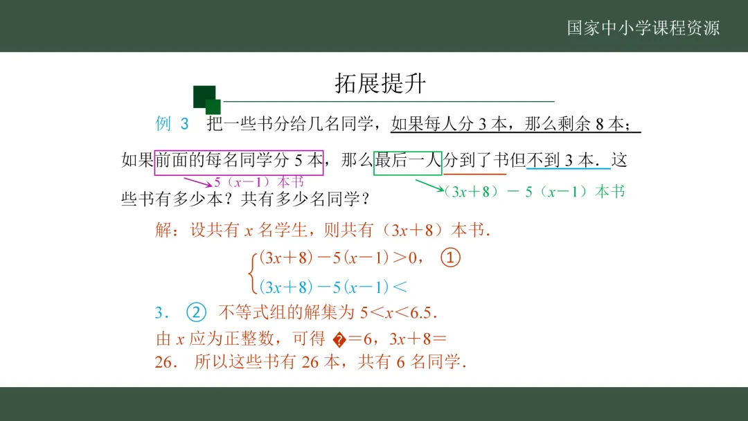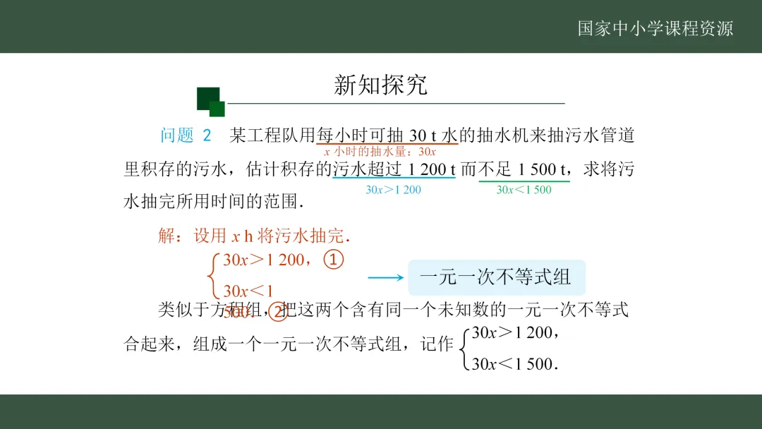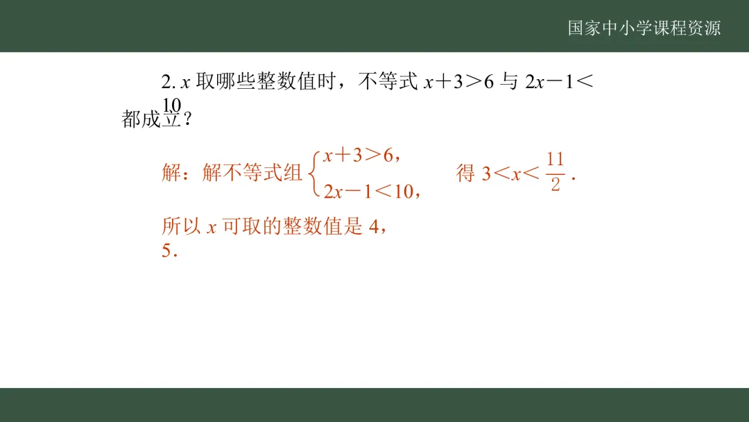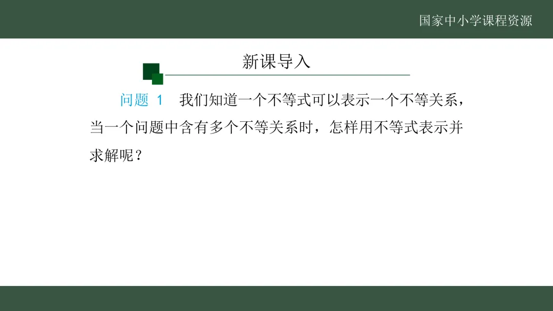 当前位置:首页>课件>【教学课件】(新教材)人教版初中数学七年级下册《11.3 一元一次不等式组》