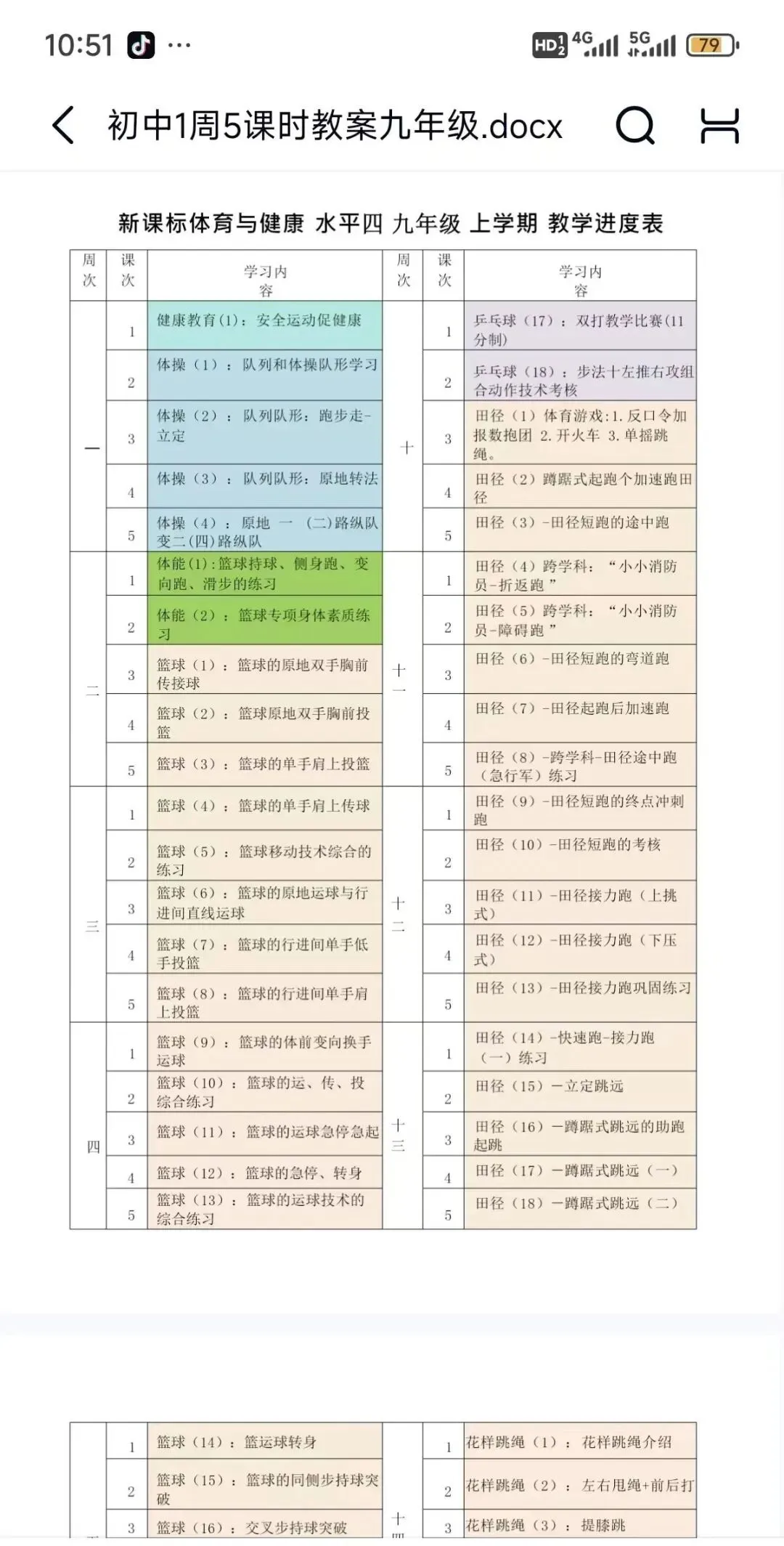 十四 | 40 | 任选教材——篮球:篮球游戏和比赛。 |