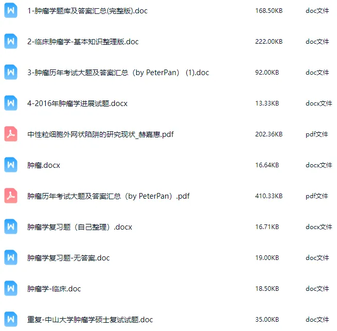 注:篇幅有限,以上仅部分展示,有需要的小伙伴想要获取【肿瘤学资料(课件+试题)】更多详细内容,欢迎扫描下方二维码添加小助理微信领取。