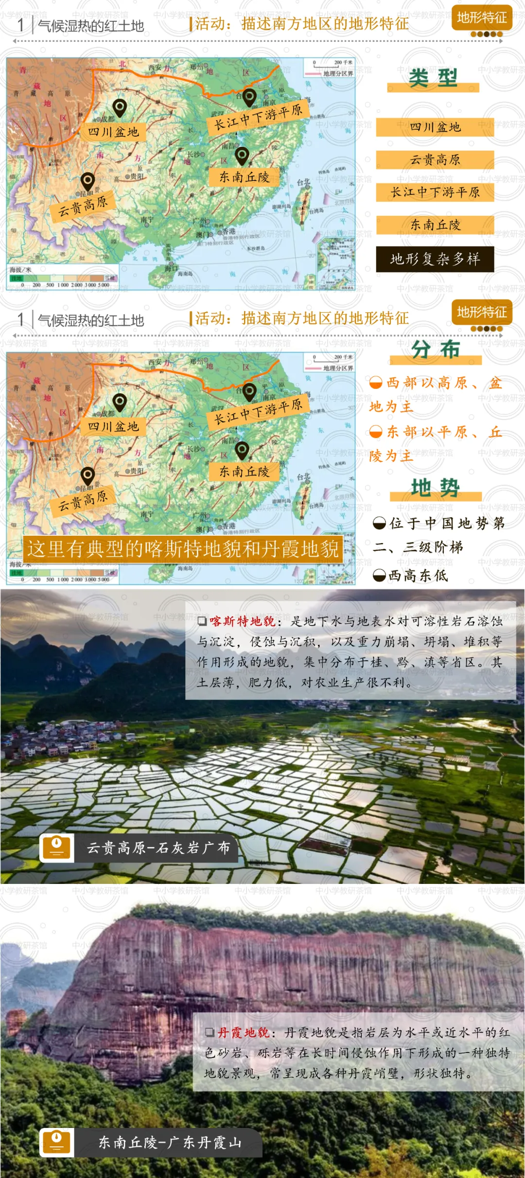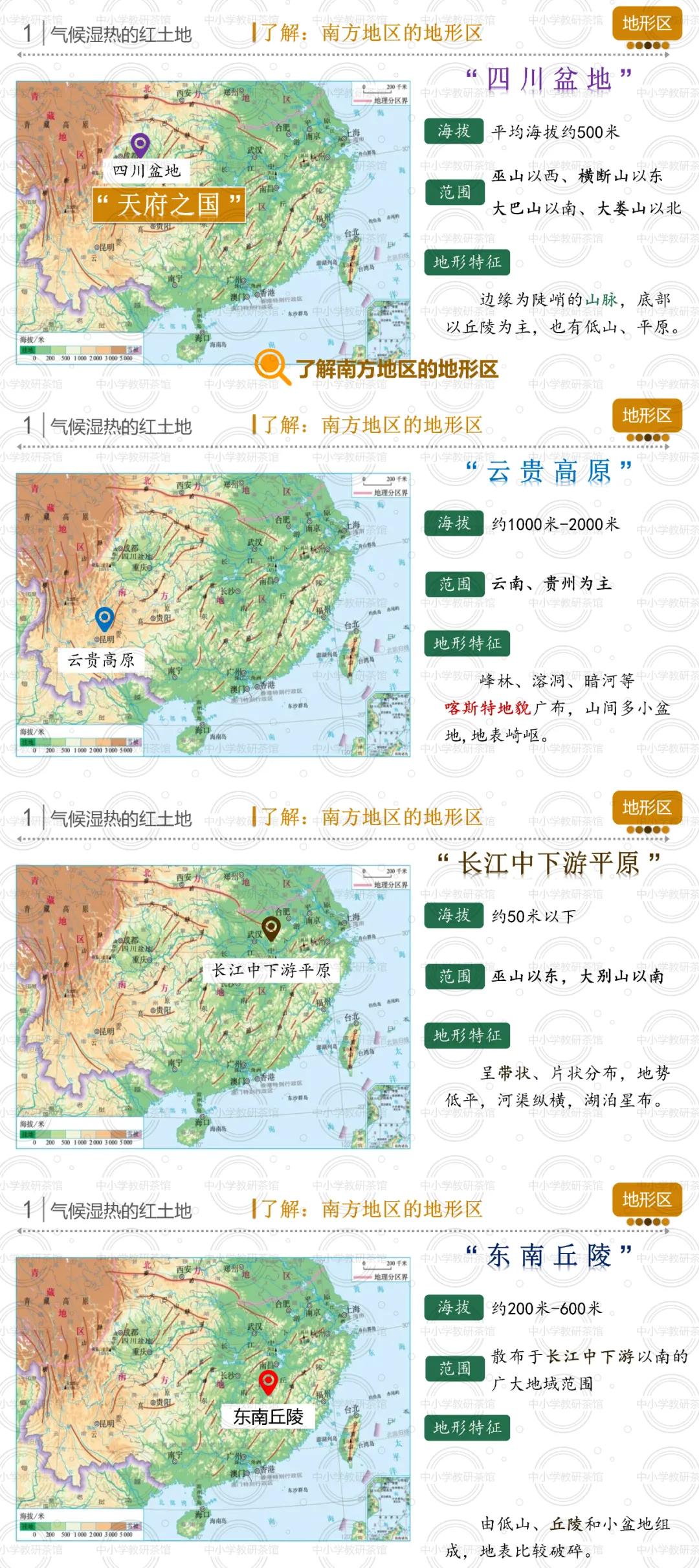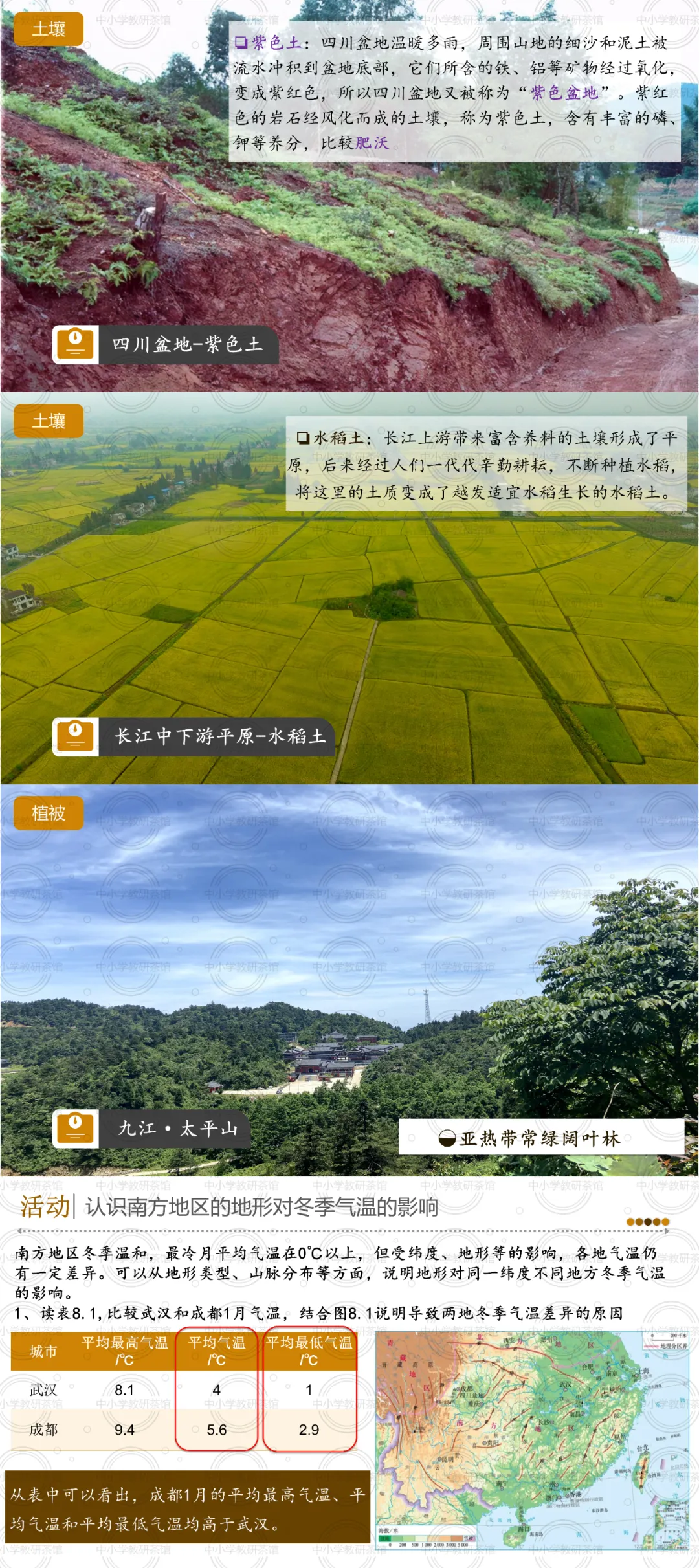 好处:不仅讲南方地区整体的“红土地”、“水稻土”,还强调内部的差异性(如四川盆地、云贵高原、东南丘陵的不同特征),培养了学生“区域认知”的核心素养。