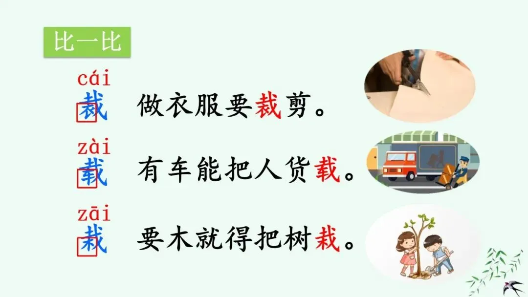 教师引导学生利用“加一加、换一换、比一比”等方法识记“咏、裁”。