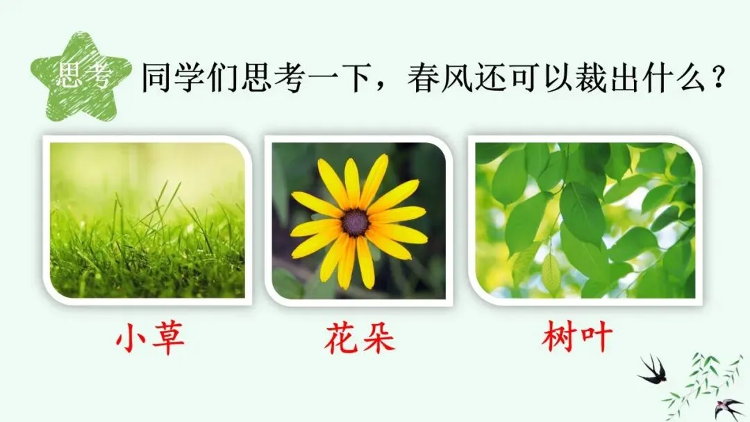 (3)教师拓展:同学们思考一下,春风还可以裁出什么?(出示课件15)