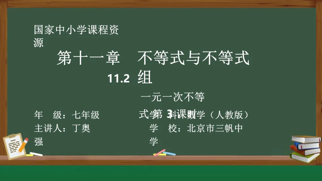 当前位置:首页>课件>【教学课件】(新教材)人教版初中数学七年级下册《11.2 一元一次不等式》第3课时