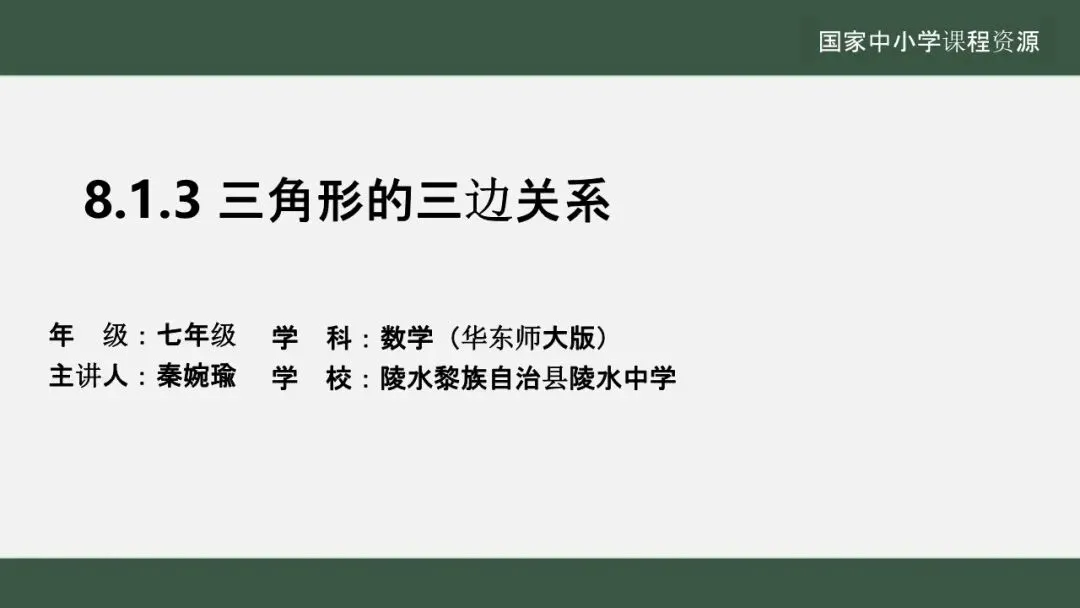 当前位置:首页>课件>【教学课件】(新教材)华师大版初中数学七下 《8.1.3.三角形的三边关系》