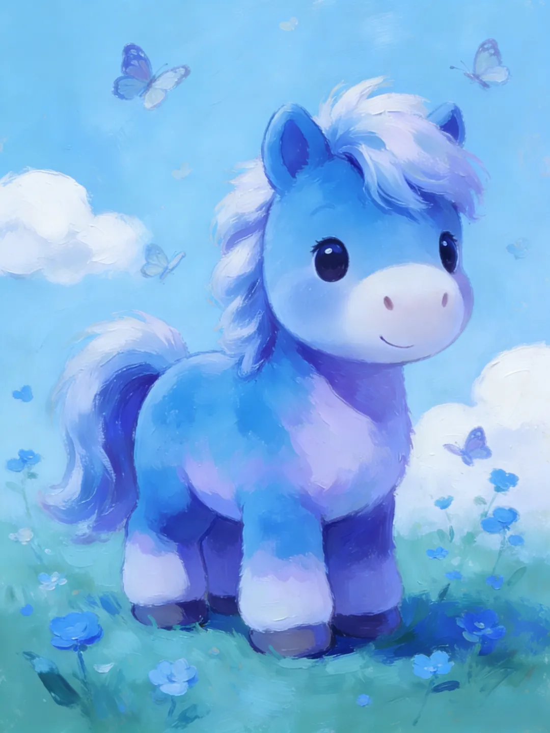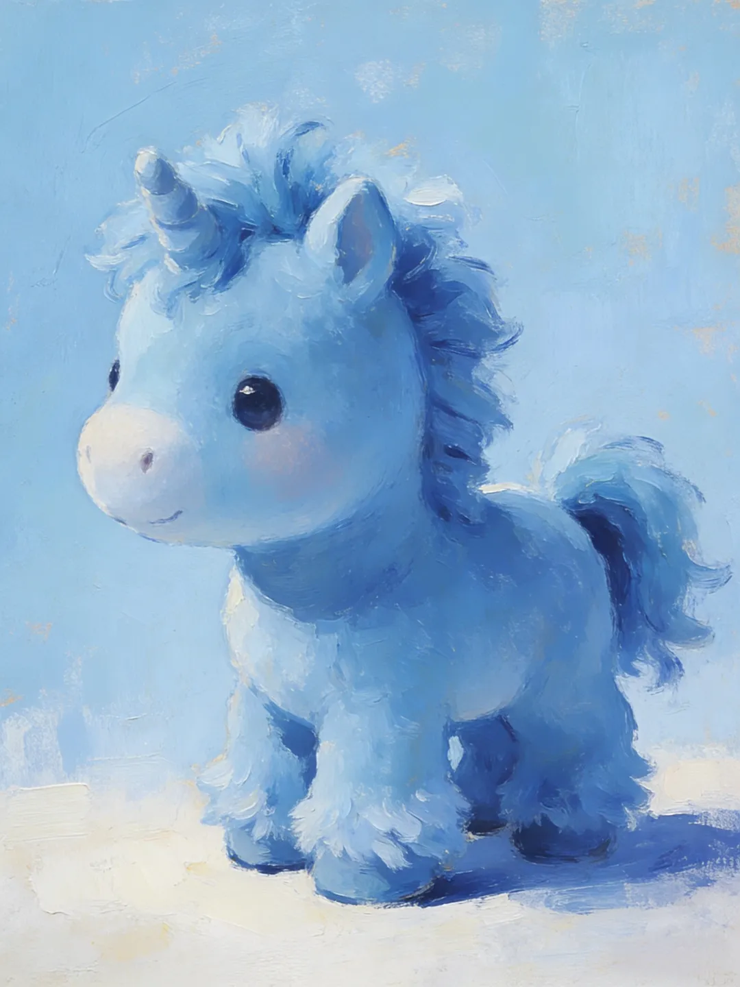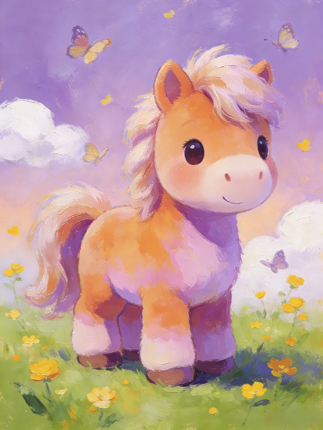 脖子画一条细彩带(浅粉/浅金),尾巴、鬃毛用弧线表现。