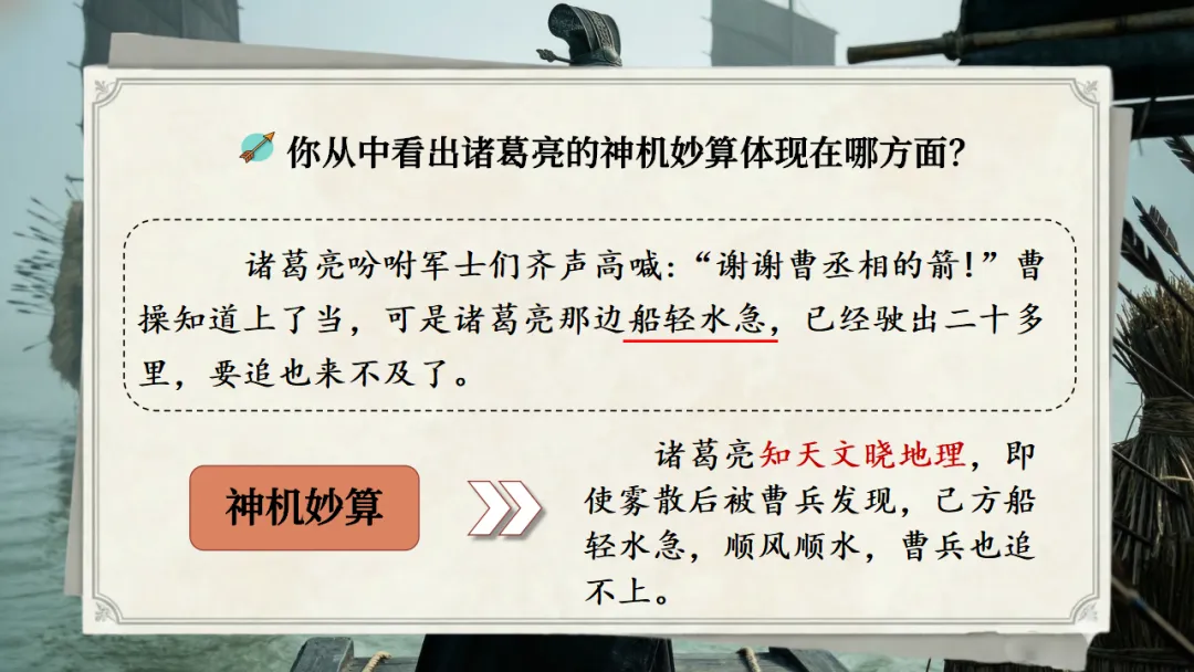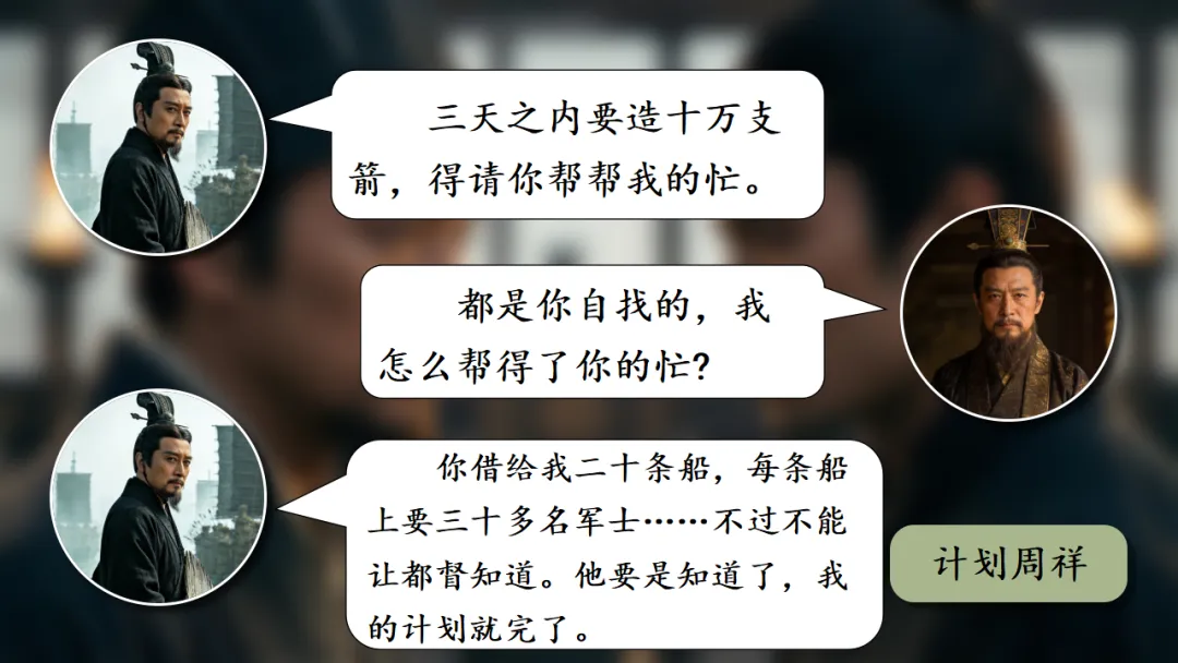 >五下《草船借箭》AI赋能课件 | 跨时空邂逅三国英雄,凭智谋化解绝境危机(课件+AI视频+教案)