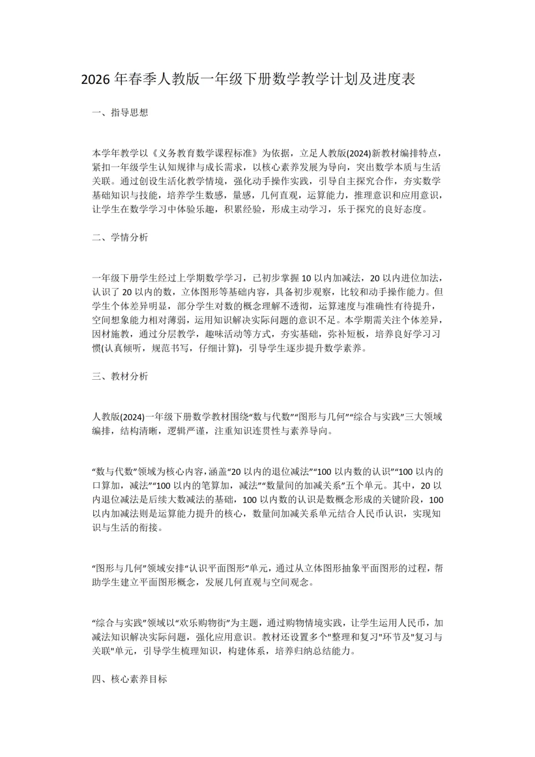 今日分享2026春新版一年级下册数学课件+教案+教学计划,完整版可编辑。