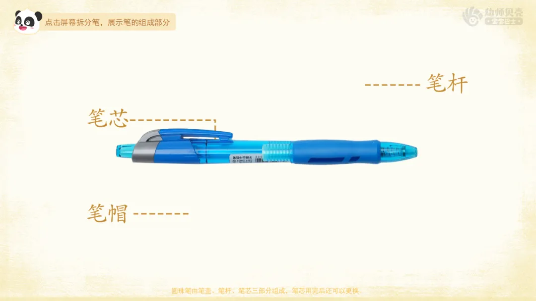 ——动手试一试、拆一拆,看看笔有几个部分组成?