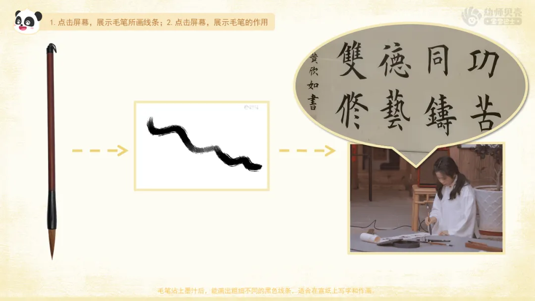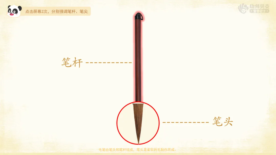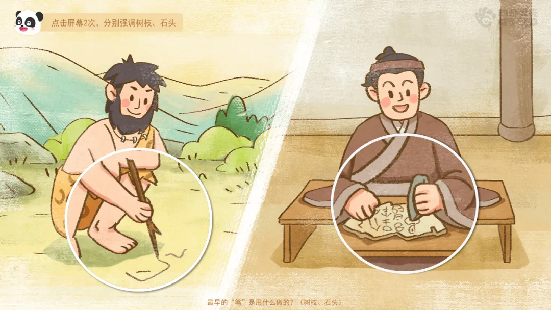 ——原来不同的笔都有不同的作用,那么你们知道最早的“笔”是什么样的吗?跟着老师一起去视频里找一找吧。