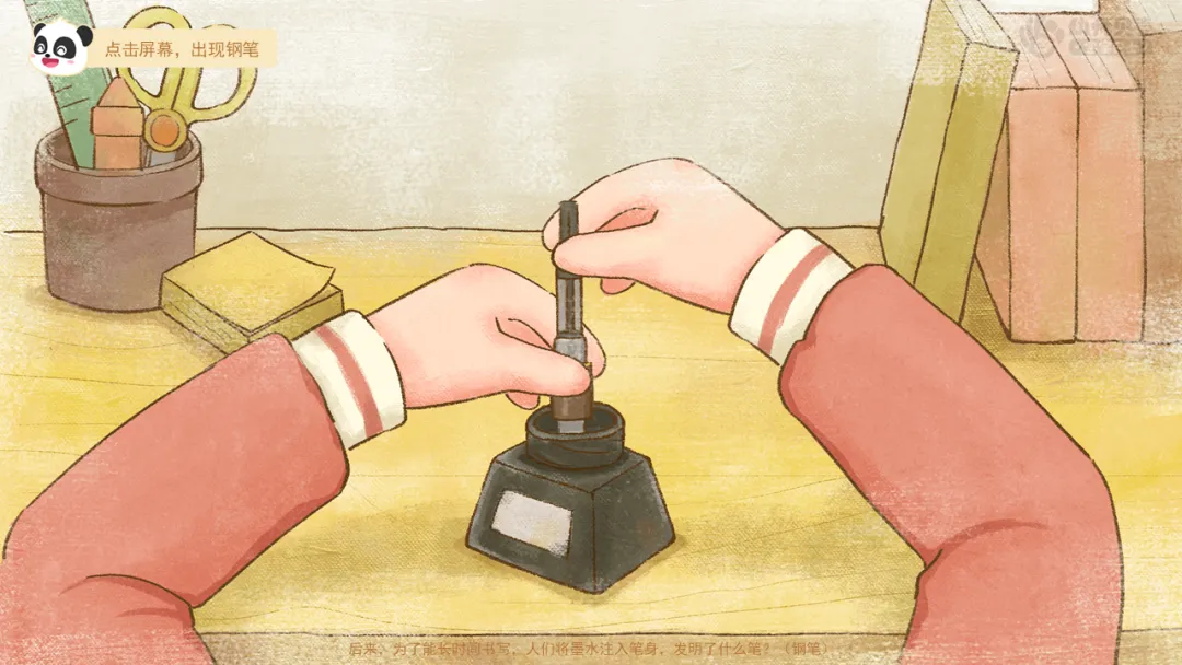 ——后来,为了能长时间书写,人们将墨水注入笔身,发明了什么笔?(钢笔)