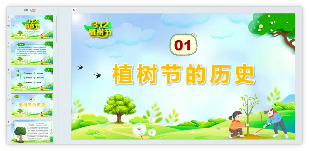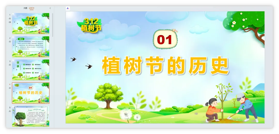 收集植树节的历史、由来、作用、孙中山与植树节的相关资料,精心制作PPT。