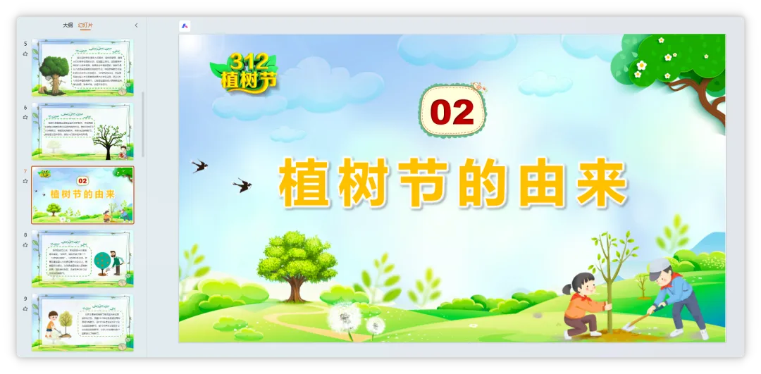 提及世界上最早的植树节是美国内布拉斯加州制订的,以及我国植树节的演变过程,让学生了解到植树节在全球的发展情况。