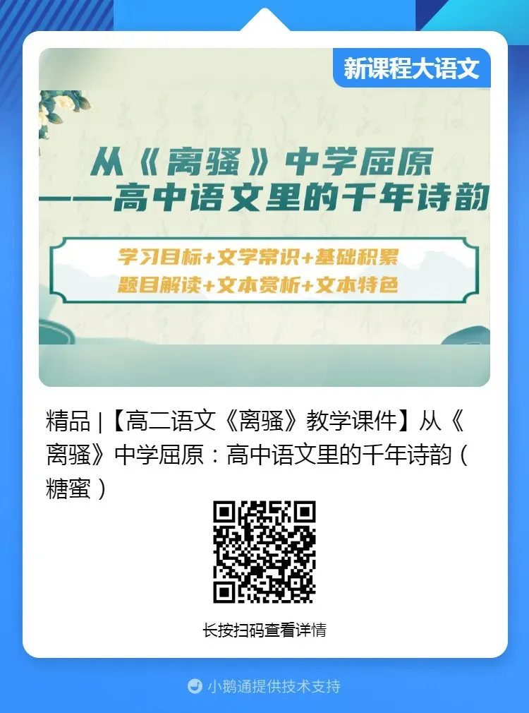 课程尾声之际,教师问:《离骚》学到这里,不知道大家有什么话想对屈原说没有?
