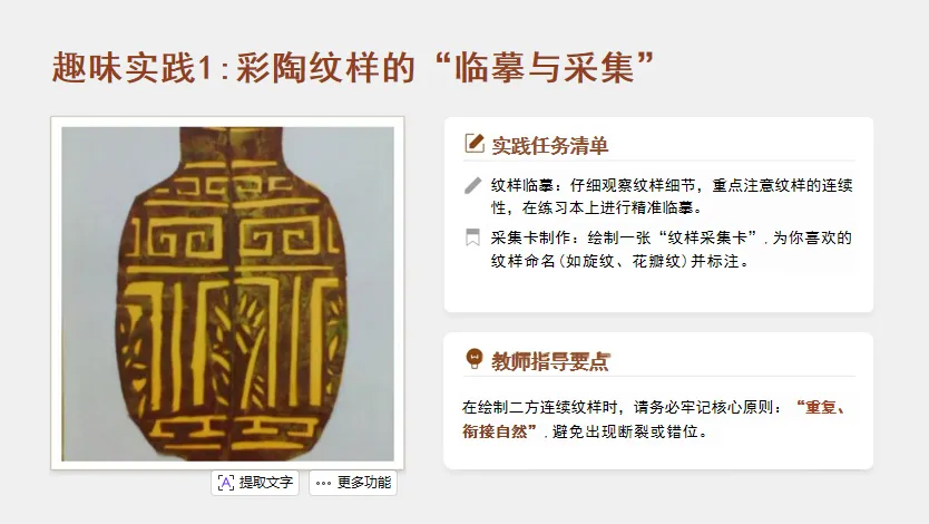 (四)趣味实践1:彩陶纹样的“临摹与采集”(10分钟)