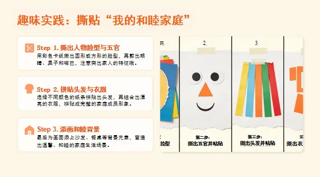 (三)趣味实践:撕贴“我的和睦家庭”(15分钟)