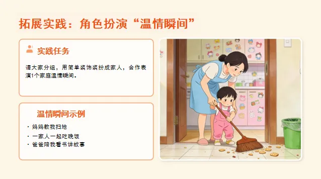 (四)拓展实践:角色扮演“温情瞬间”(10分钟)