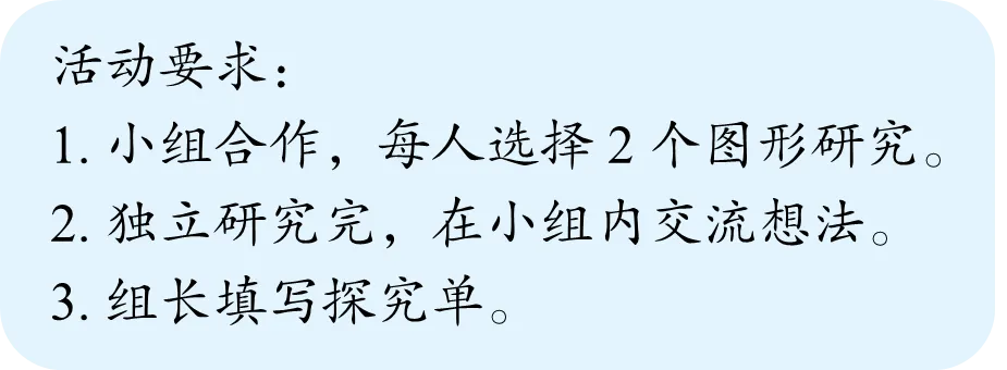 拿出2号学具袋的探究单和图形动手试一试吧。