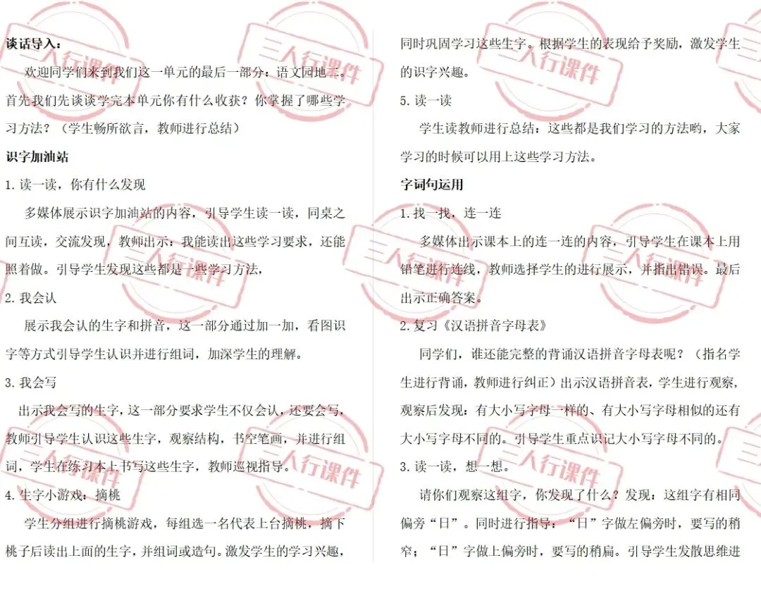 多媒体展示识字加油站的内容,引导学生读一读,同桌之间互读,交流发现,教师出示:我能读出这些学习要求,还能照着做。引导学生发现这些都是一些学习方法,