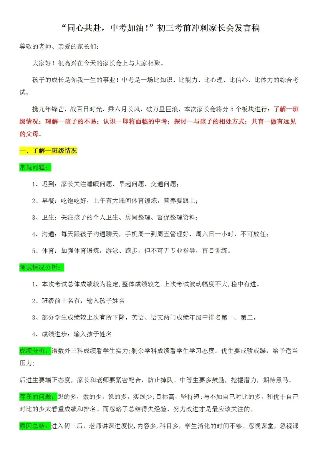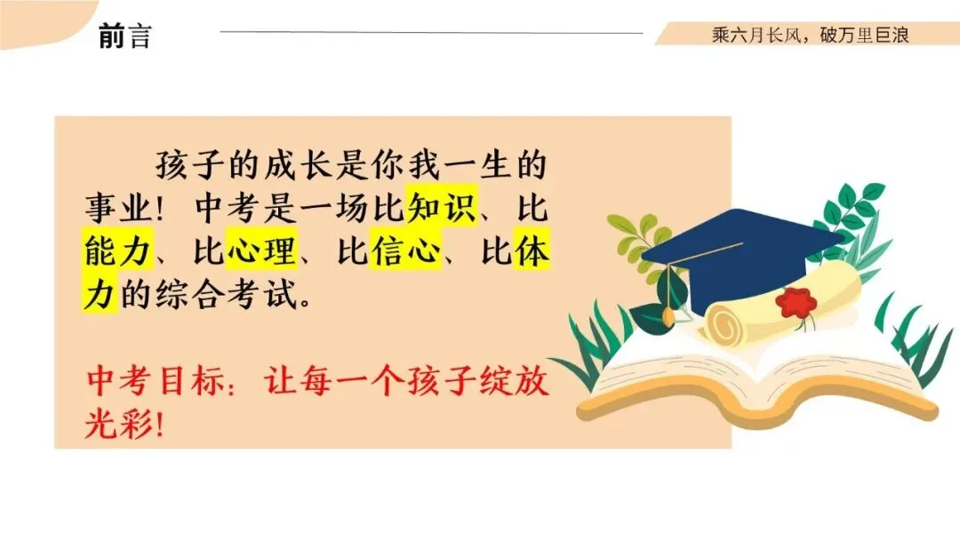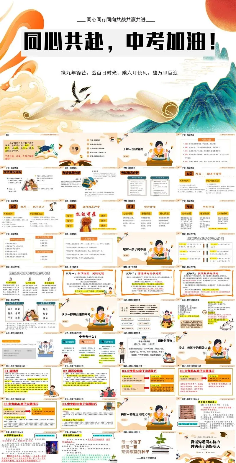 中考冲刺倒计时,如何陪孩子跑好“最后一公里”?这份《同心共赴,中考加油》初三考前冲刺家长会ppt课件+发言稿,为教师提供了一套有温度、有策略、可落地的毕业班家校沟通方案。
