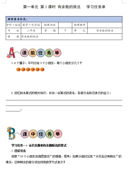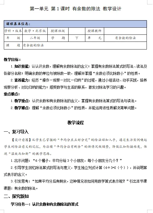 2026新版北师版二年级数学下册课堂笔记+教材解读【可下载打印】