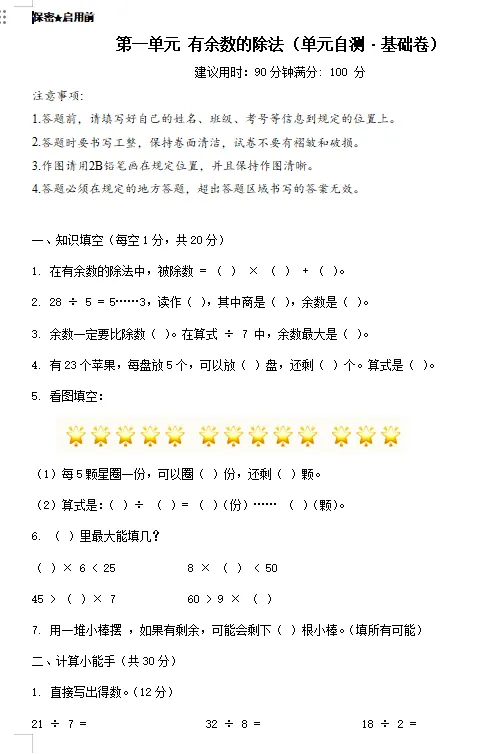2026新版人教版数学二年级下册单元测试卷+习题试卷更新完+五星学霸【可下载