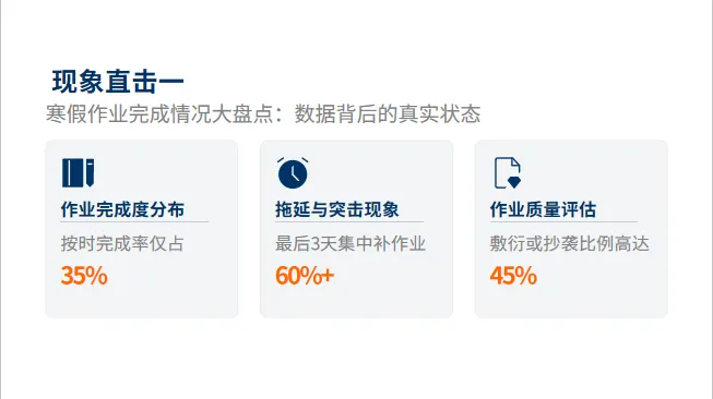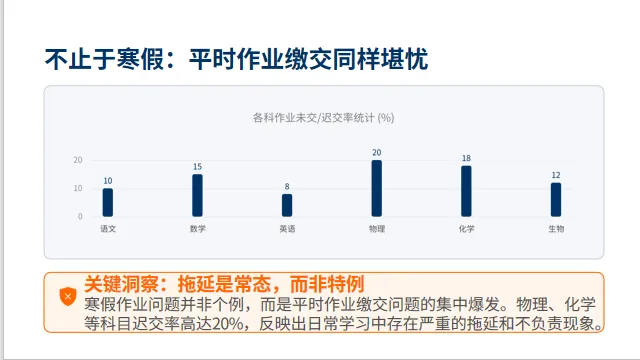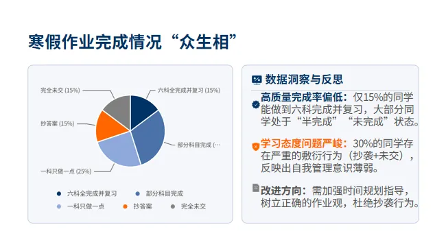 寒假作业缴交情况其实和平时的作业情况也是如出一辙,老师们可以趁此机会顺便整顿一下作业缴交情况。