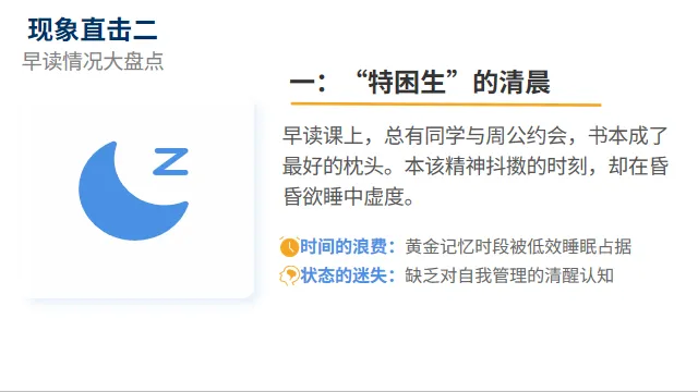 而新学期来到,很多老师也发现学生的早读无精打采,一点都没有蓬勃的朝气,老师一天上课的激情也被磨灭。因此,开一节班会课来整治作业情况与早读情况,我想也是必不可少了。