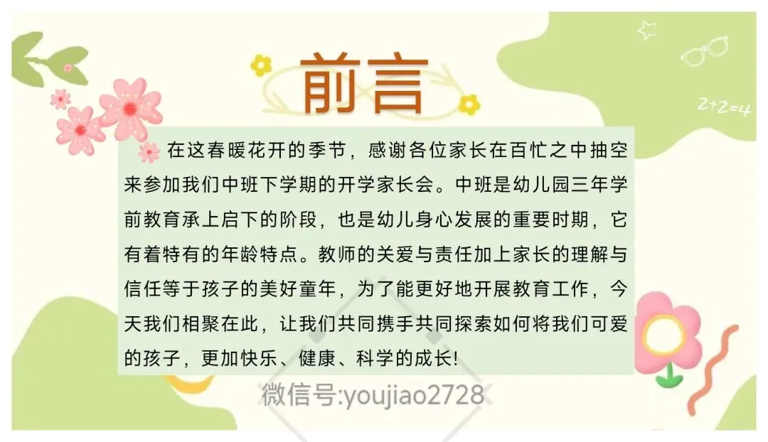 幼儿园中班春季开学家长会课件-26页