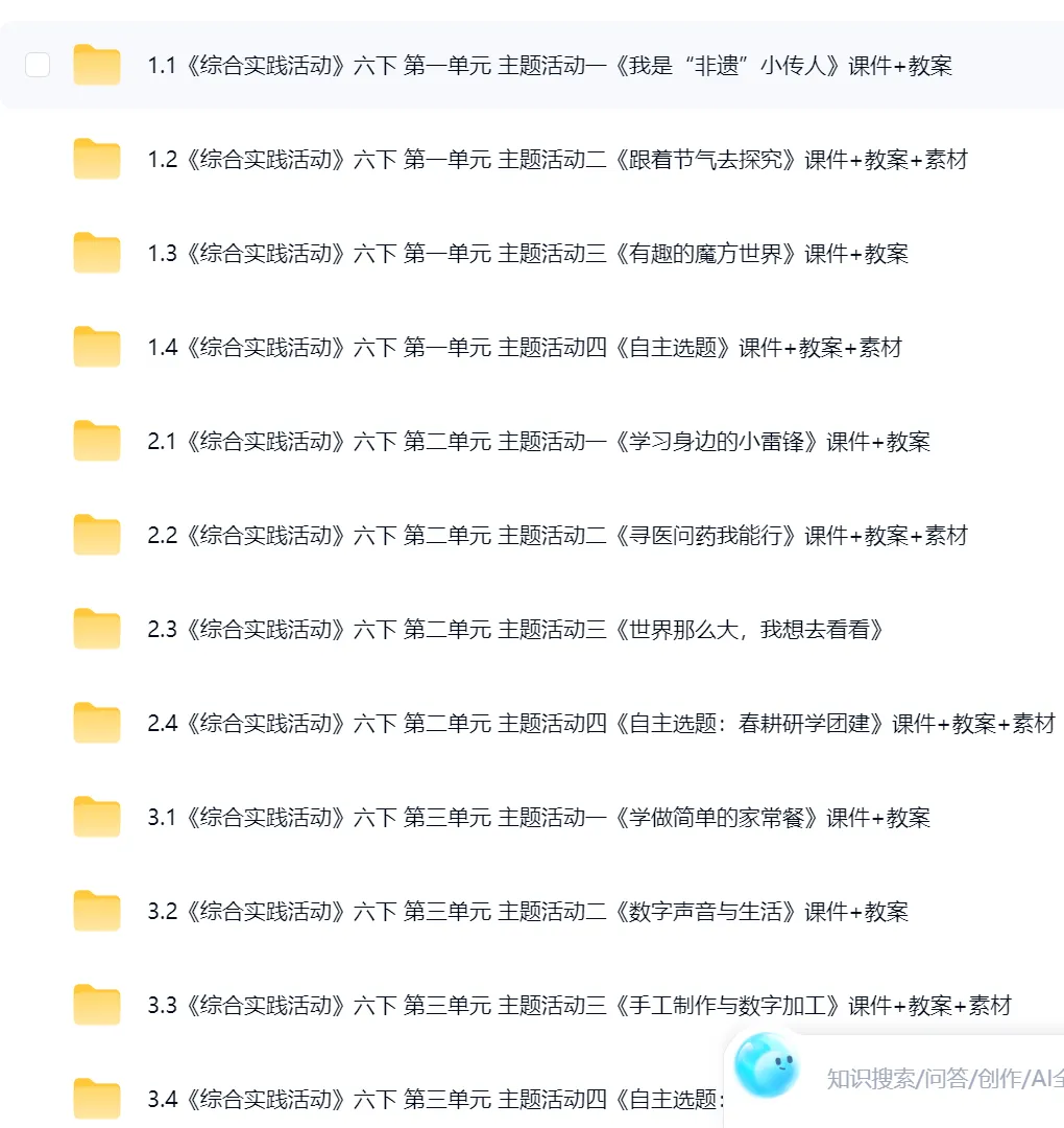>苏教版《综合实践活动》六年级下册教学课件和配套教案