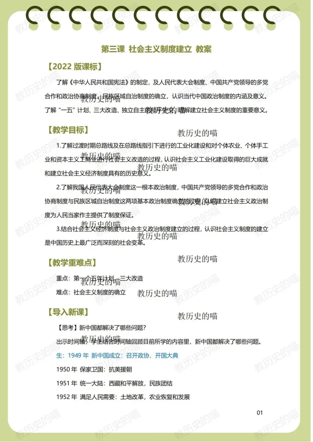 磨了好久的社会主义制度建立教案终于定稿啦✅贴合 2022 版课标,重难点突出,课堂设计超丝滑,新手教师直接抄作业,老教师也能直接用~