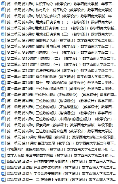 西南大板数学二年级下册-新教材