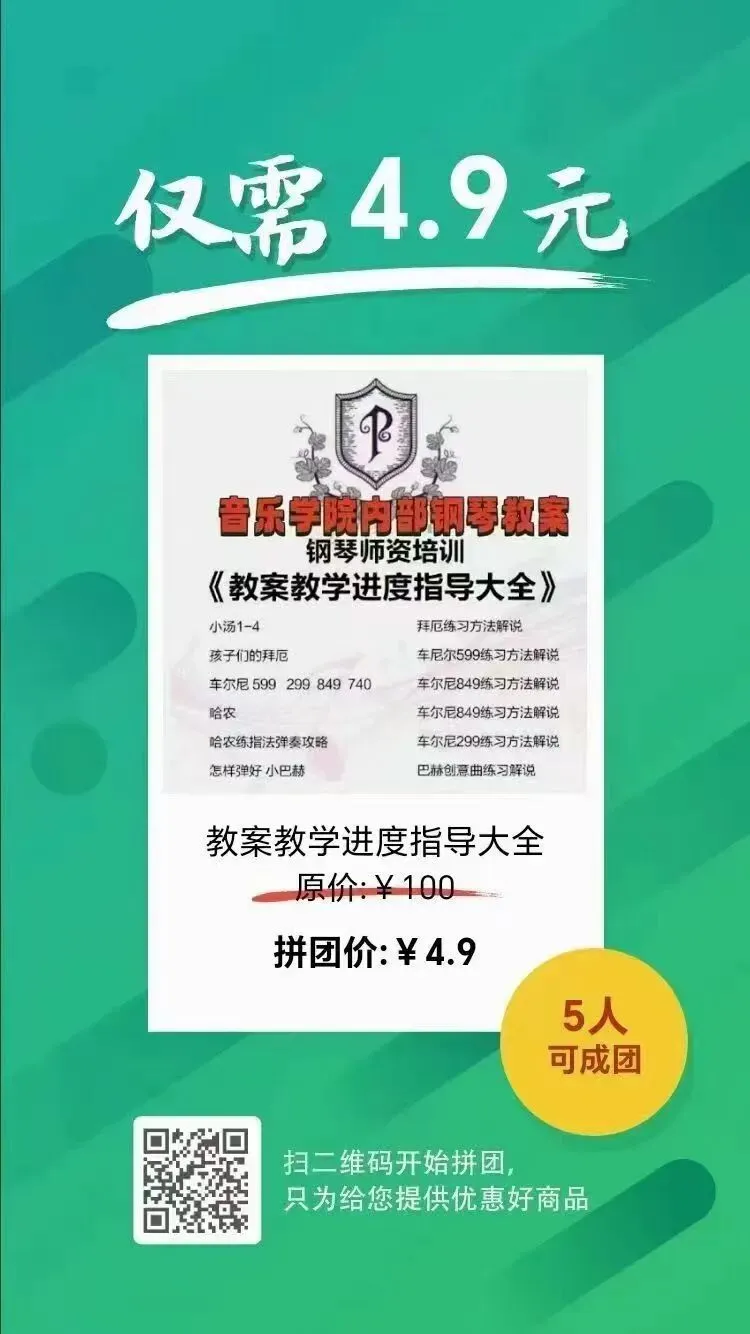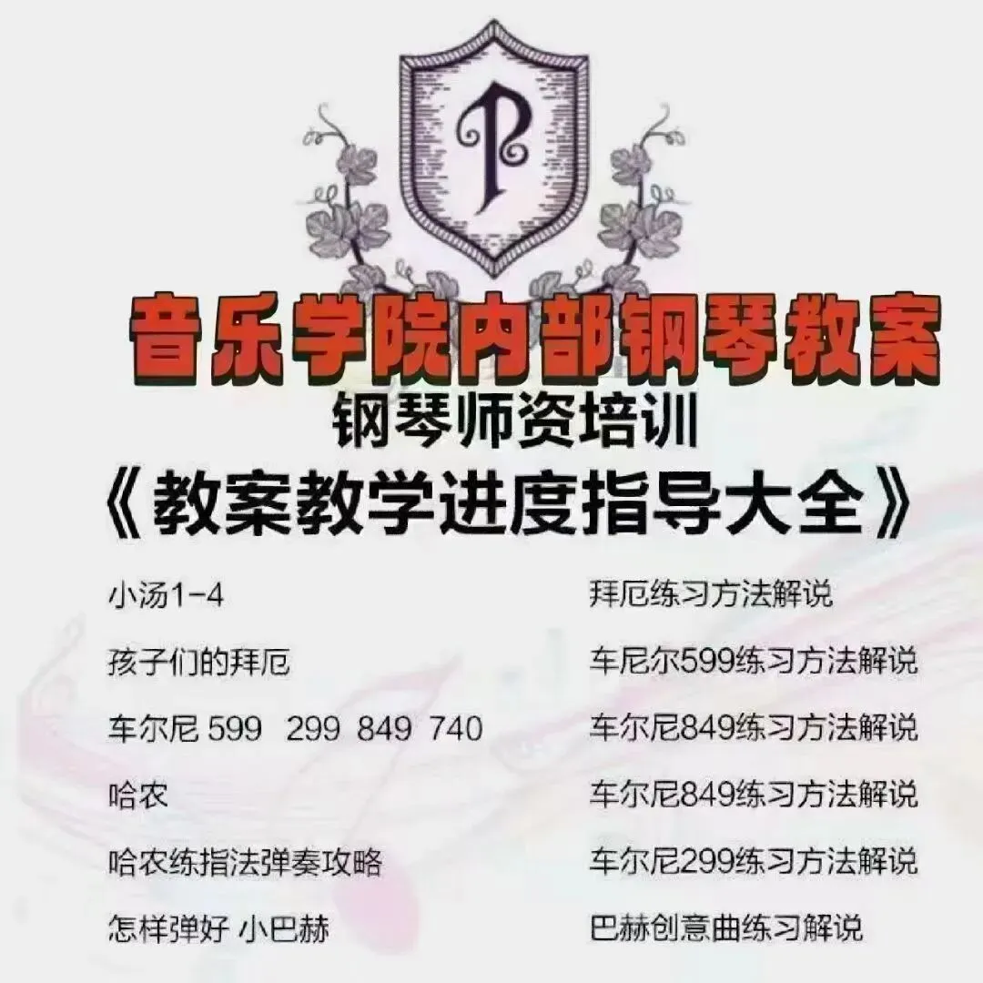 💥、音乐学院内部资料:《钢琴师资培训:教案教学进度指导大全》,优惠拼团请点击阅读原文或扫码下图二维码(拼团马上发放,请添加客服微信:bwv618):