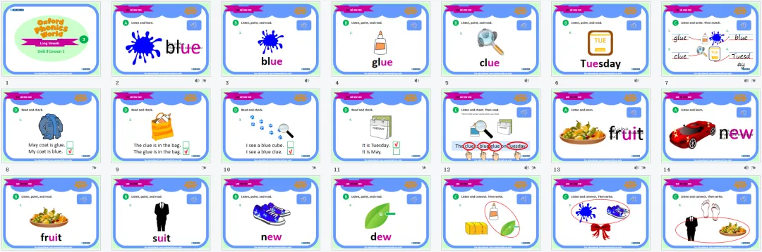 第三个级别一共20个PPT,讲解了长元音的发音:
