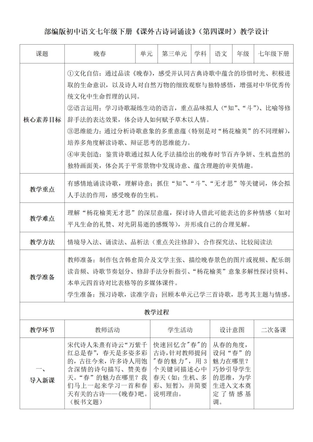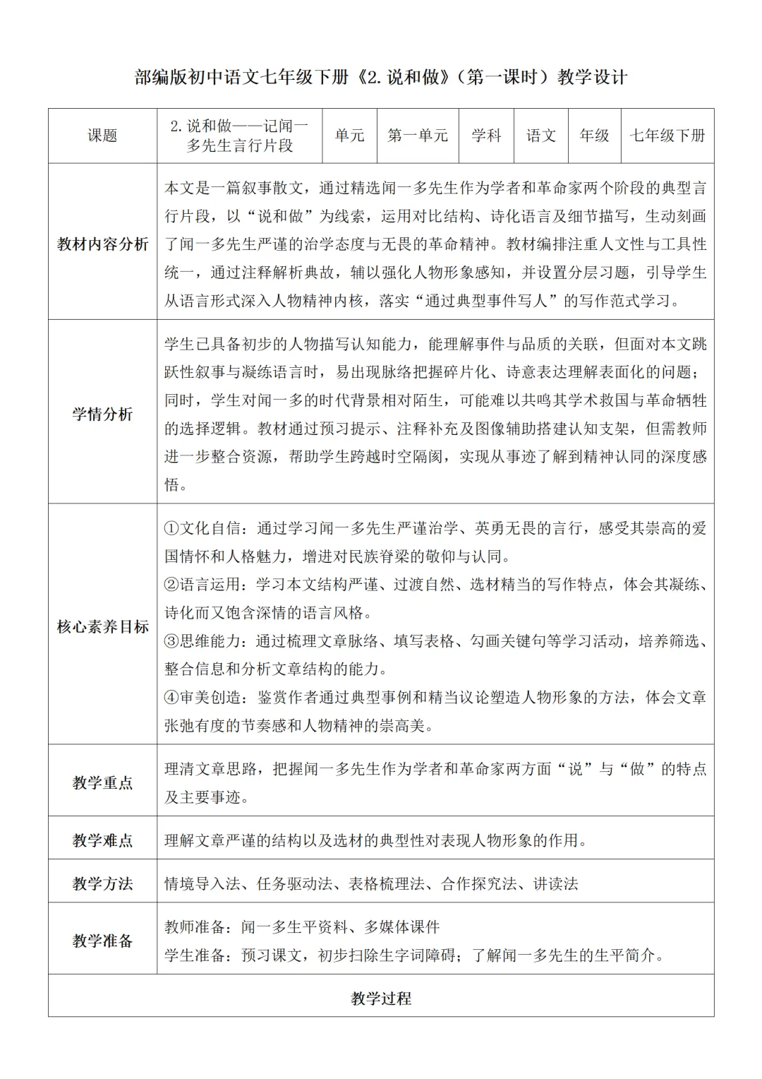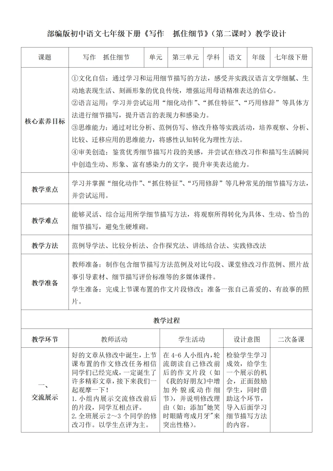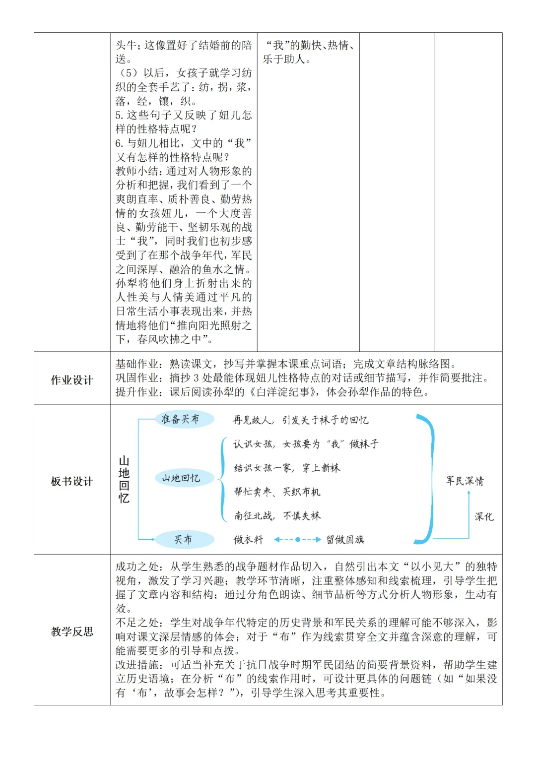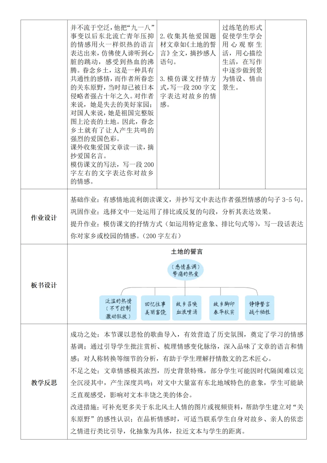 >部编人教版新教材七下语文表格式教案(教学反思有内容)