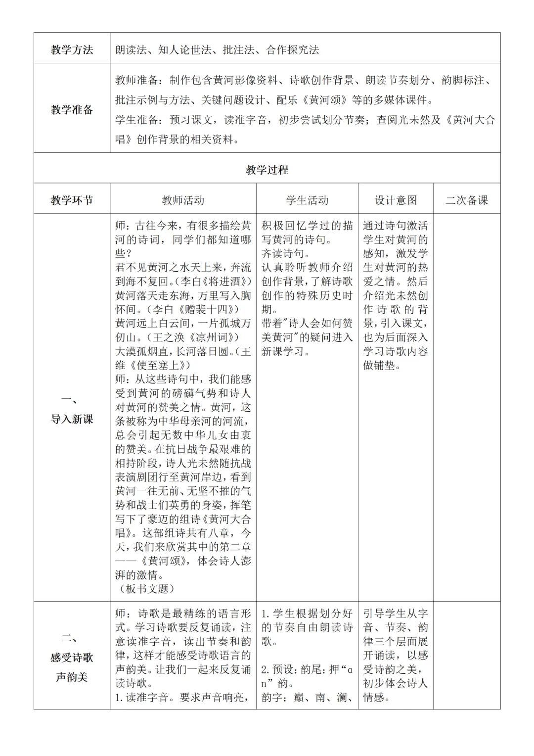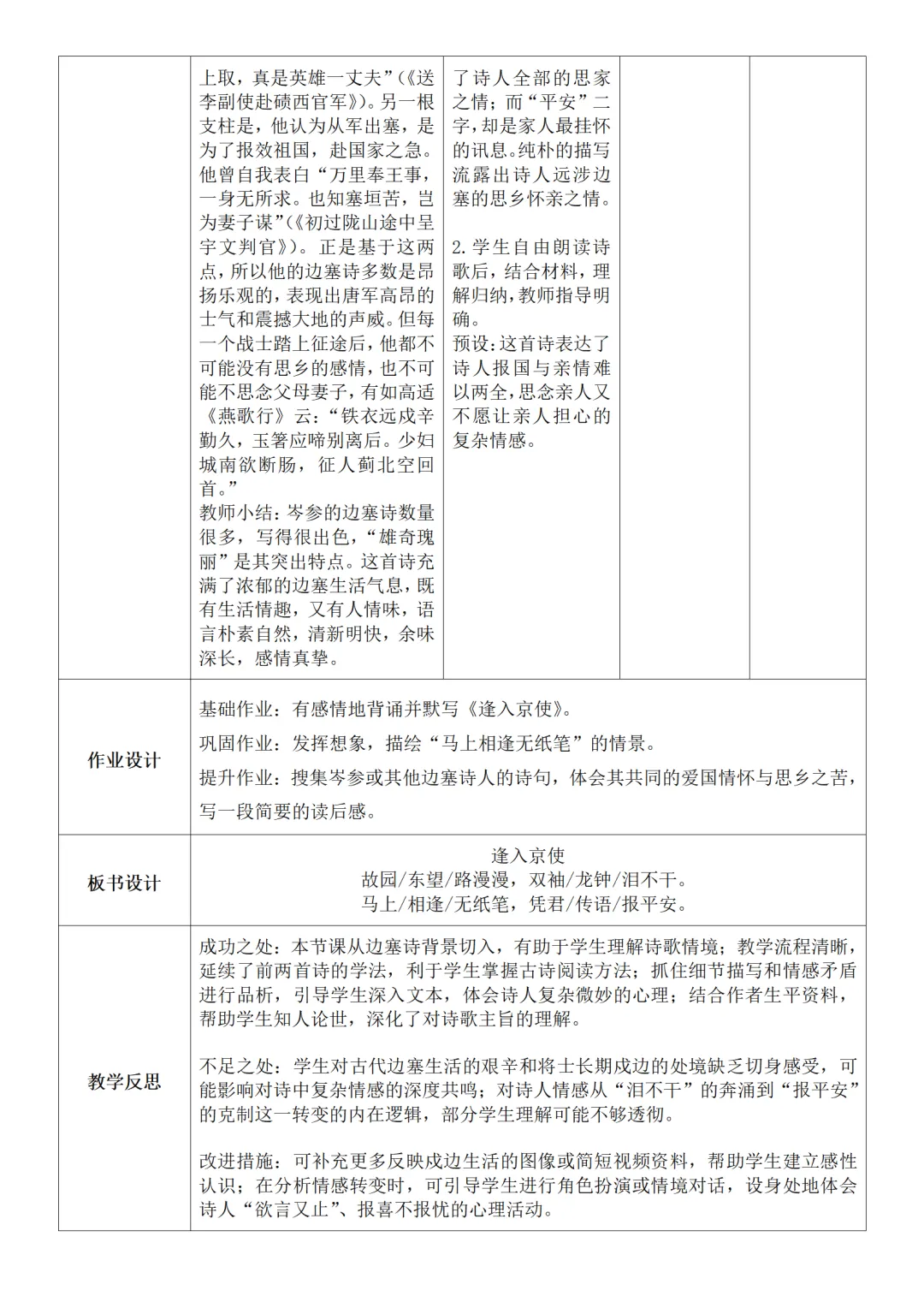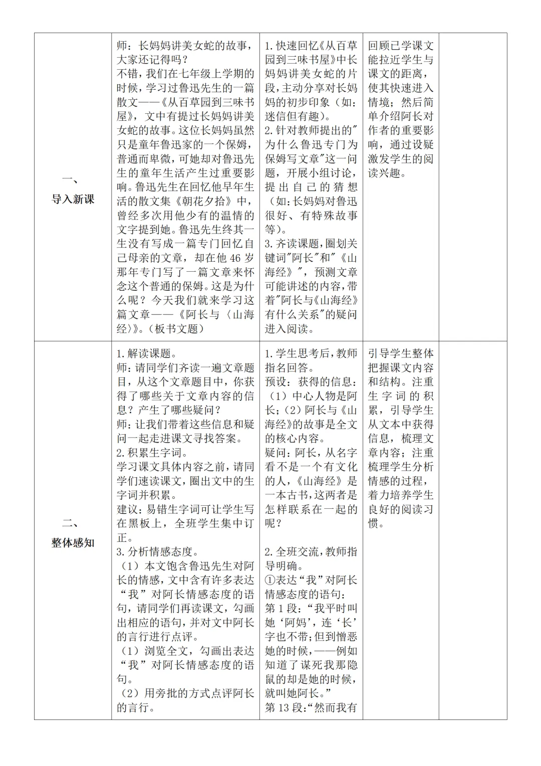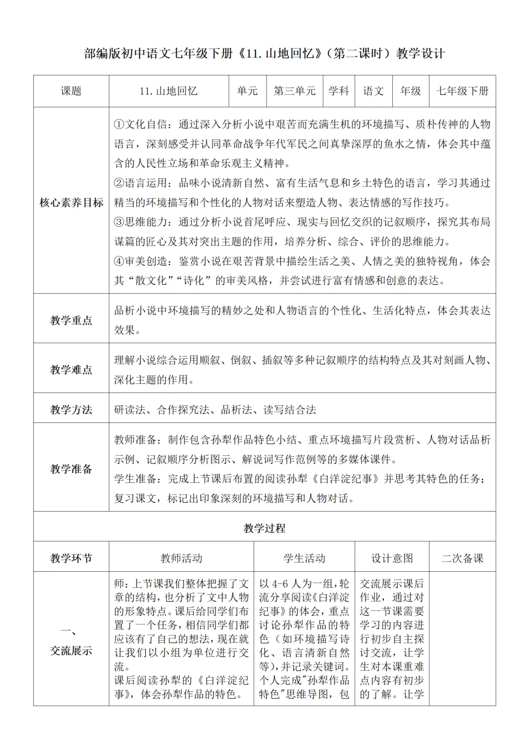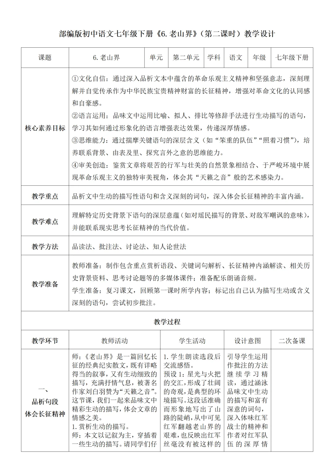 >部编人教版新教材七下语文表格式教案(教学反思有内容)
