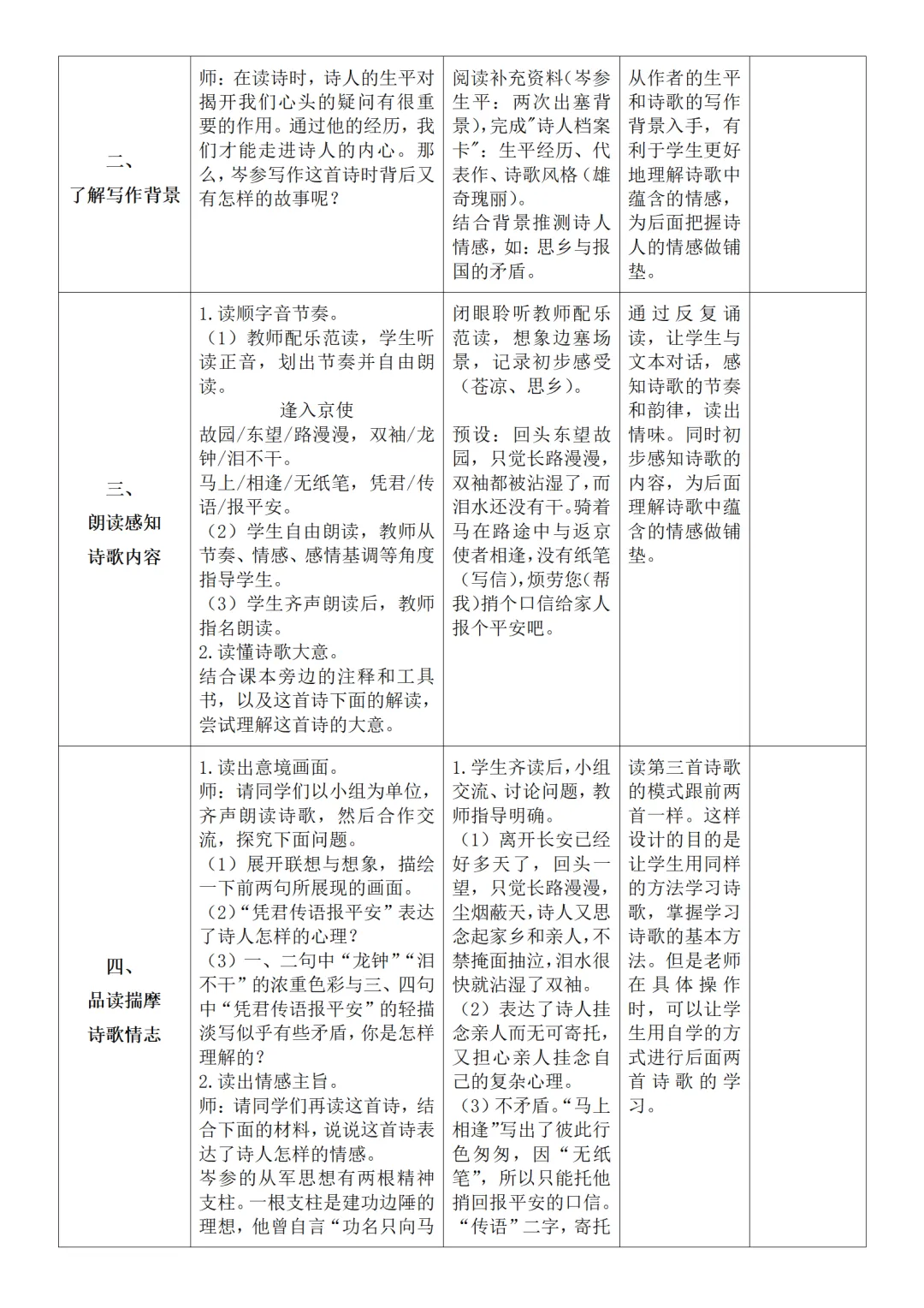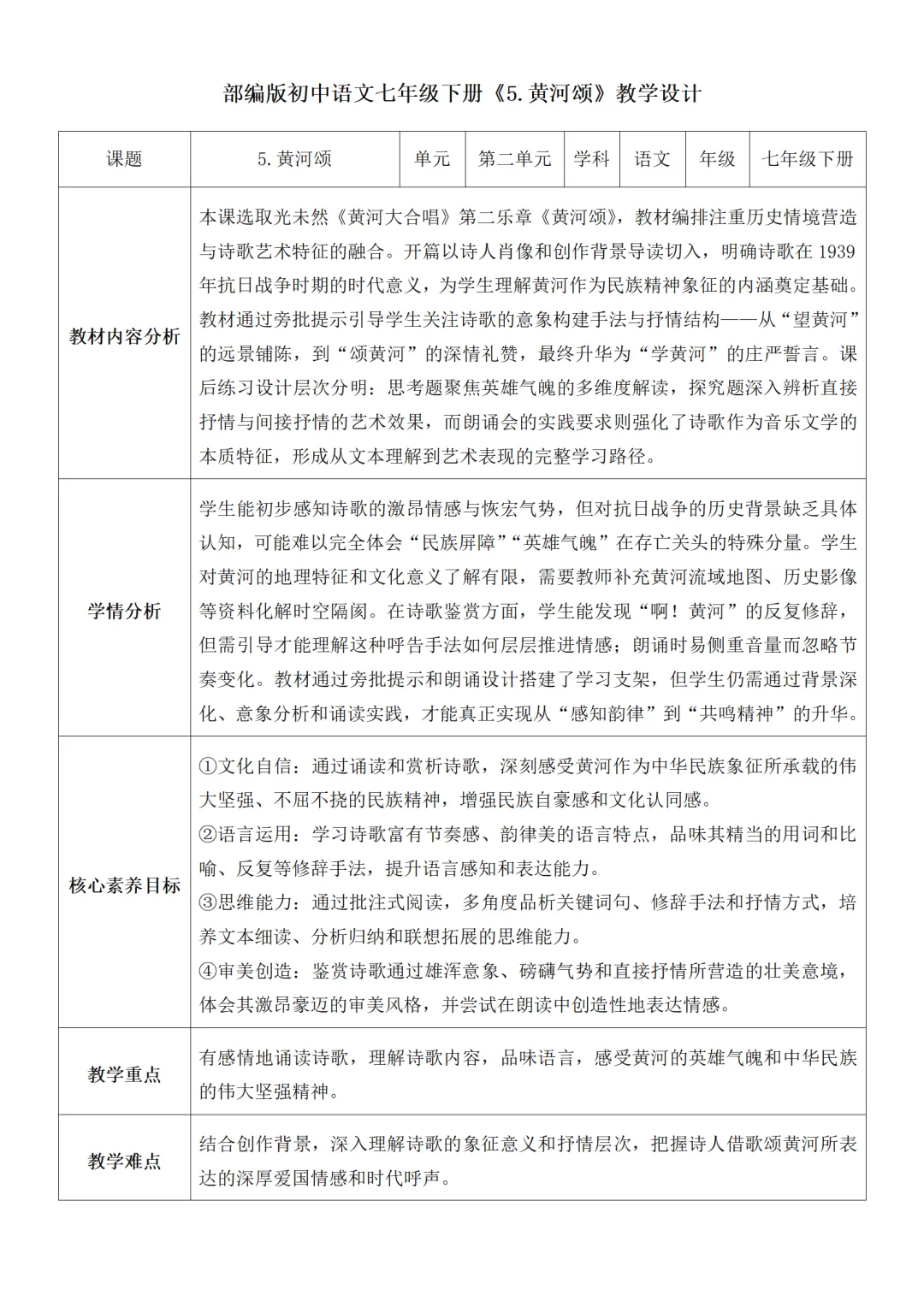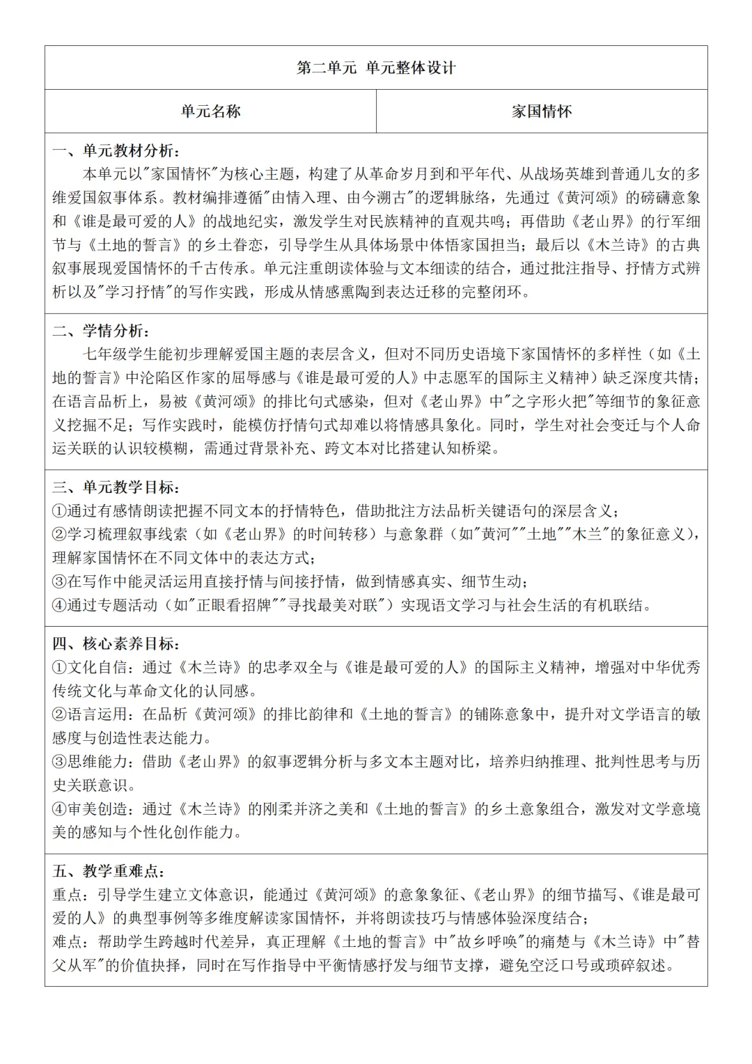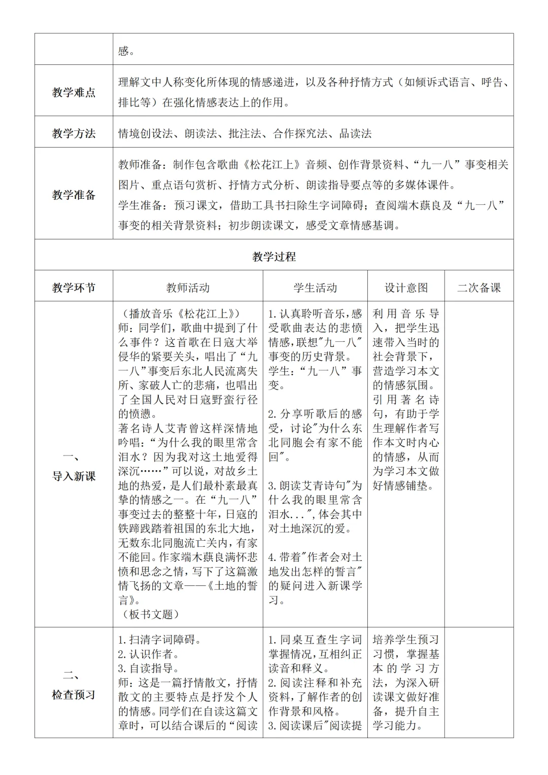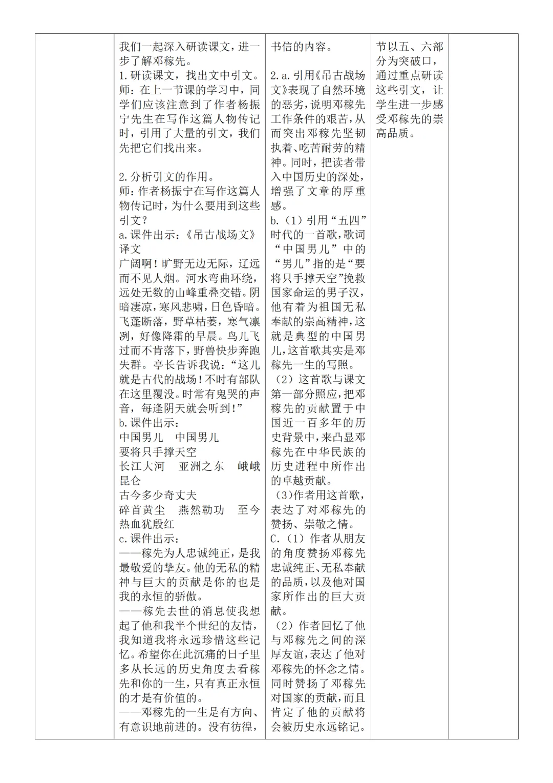 >部编人教版新教材七下语文表格式教案(教学反思有内容)