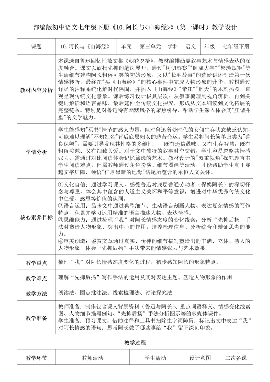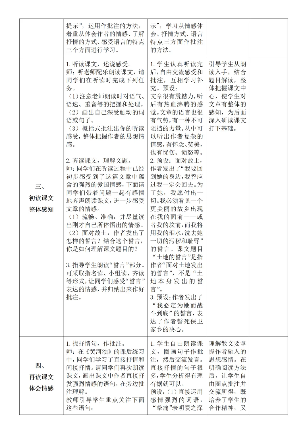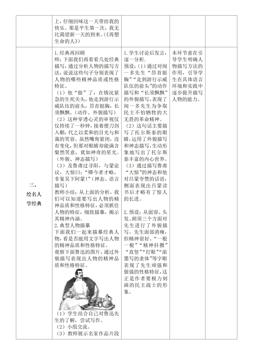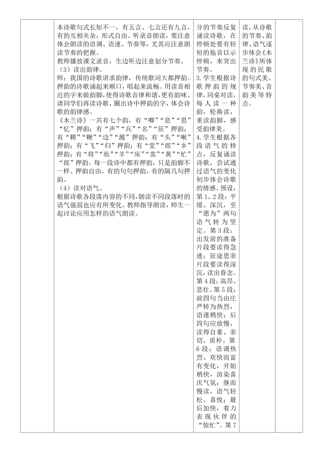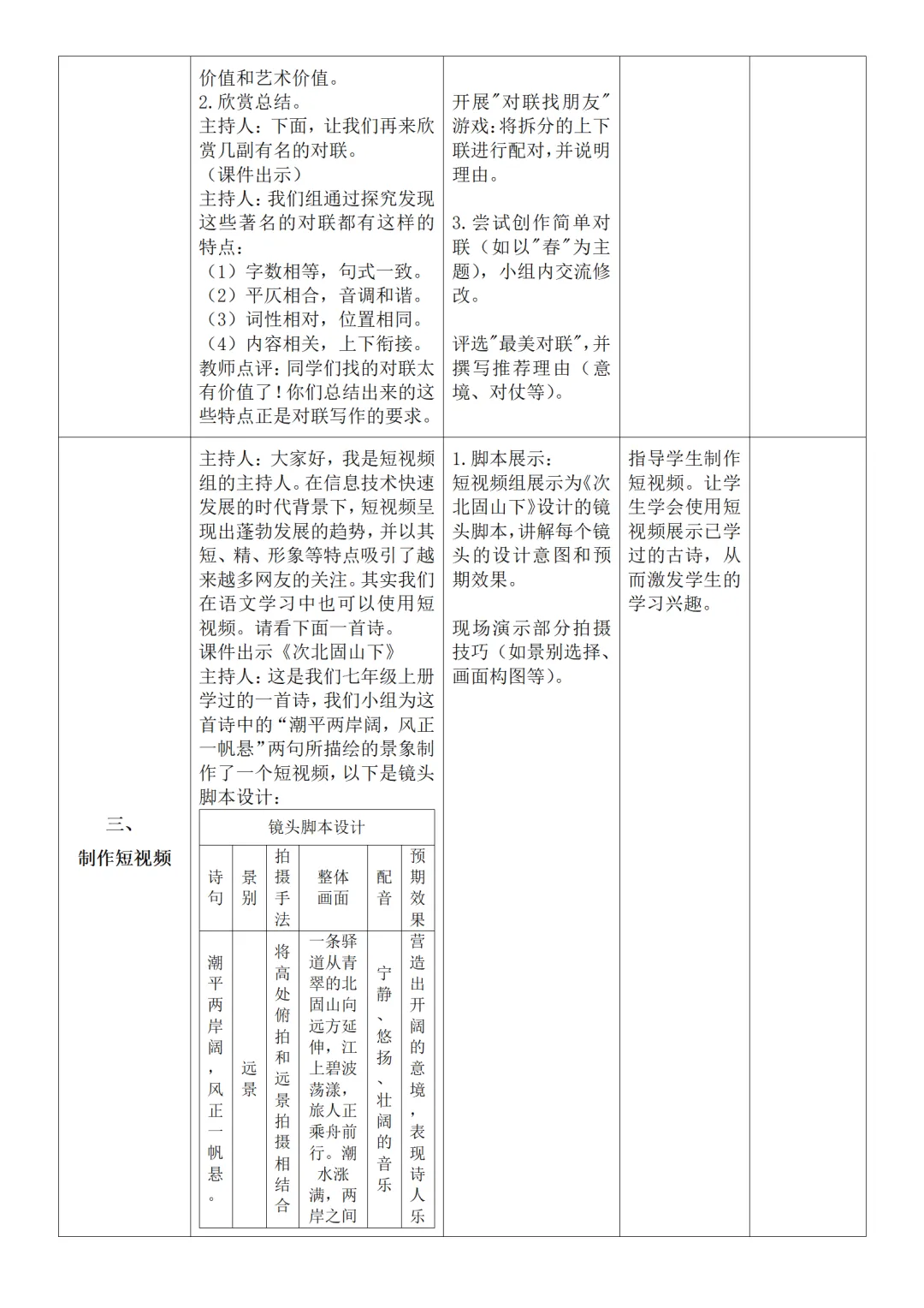 >部编人教版新教材七下语文表格式教案(教学反思有内容)